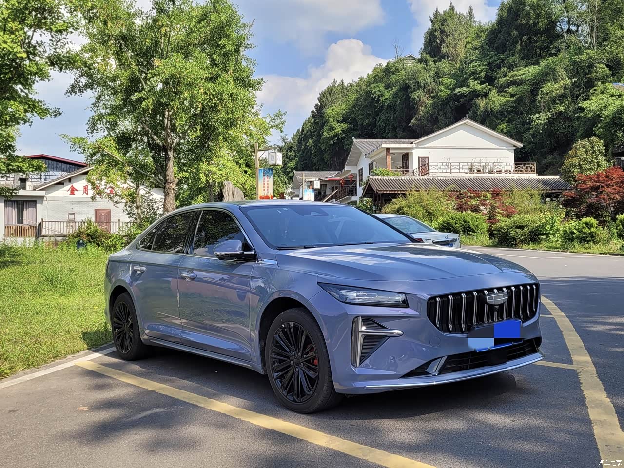简洁大气,颜色是晴山紫,室内偏灰蓝色,阳光下蓝紫色,很喜欢 如果提车时能开放轮毂选配就好了,比较喜欢银色轮毂,结果中配高配都是全黑轮毂