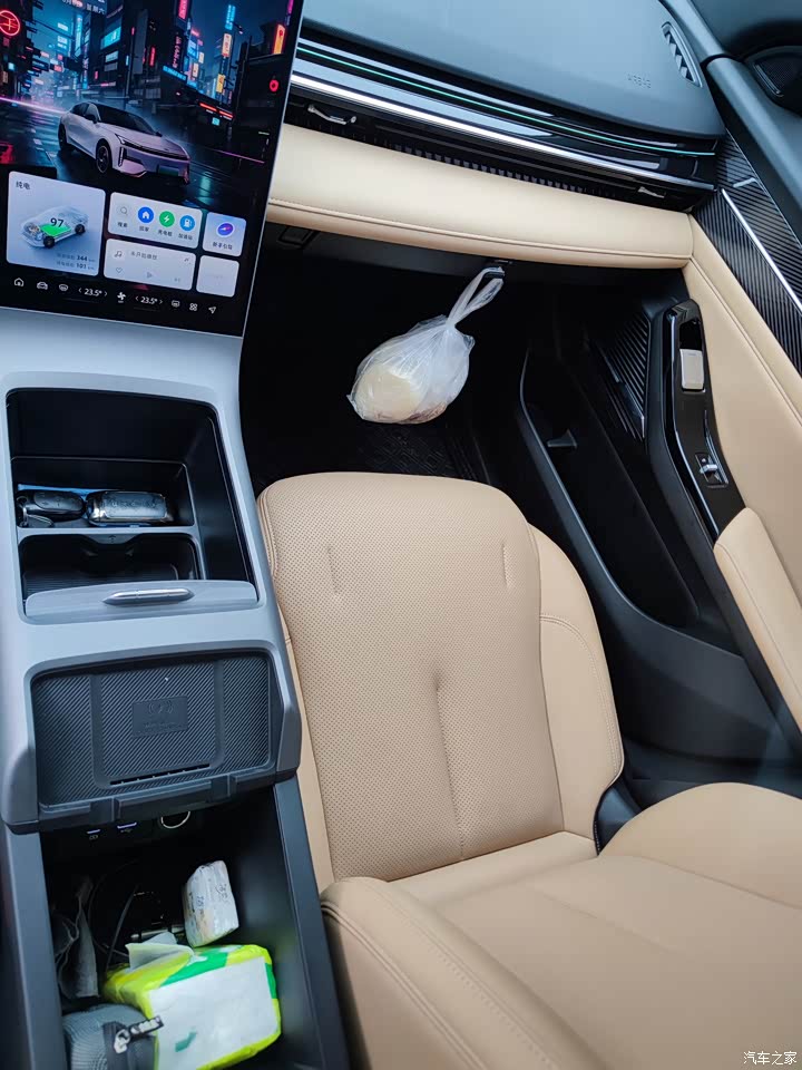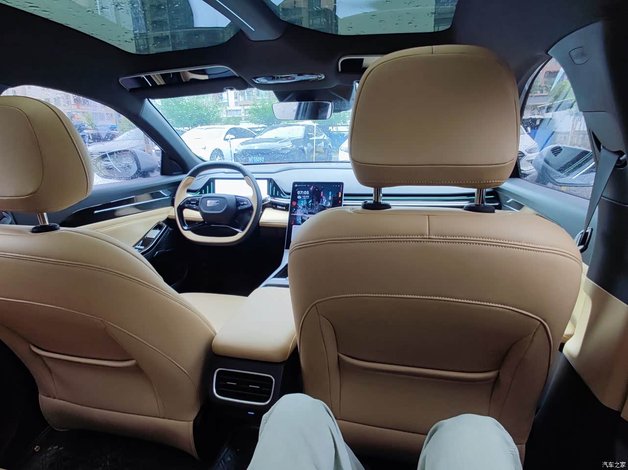 我选的黑拼棕色内饰平时好打理耐脏,能摸到的地方用皮质包裹,摸上去软软的有高级感。银河独特的开门拉手还有开关窗按钮,可以说设计非常前卫,很多第一次坐我车的人都有点懵那个是开门,都说设计高级 哈哈。中控位置没任何物理按键,车辆操作控制功能全在13.2英寸的中控立屏里,用习惯了也能接受的,怀档设计,挂挡非常的顺手便捷。
