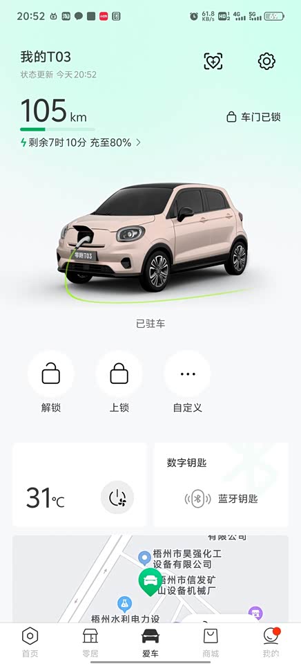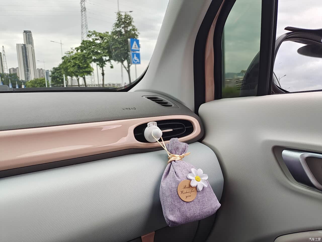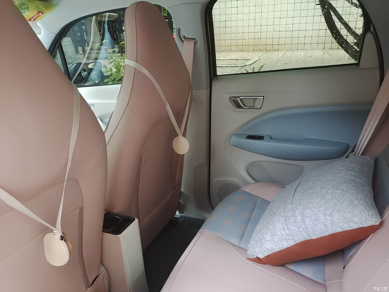 有语音功能,不过用得很少,很多命令没有,播放着音乐时又不能唤醒,总觉得有事找小零不一定找得到。 这个车虽然功能虽然不是很多,但基本能满足基本需要,车自带高德导航,酷狗音乐,另外还有电台,也算是麻雀虽小,五脏俱全。手刹是电子手刹,相较于机械手刹看起更利落精致些,更具智能化一些。粉色+海盐蓝的内饰整个看起来亮堂和可爱,虽然车子比较小,但浅色的内饰看起来不会这么狭小,后日装饰车的时候会很好看,反正比黑乎乎好看。