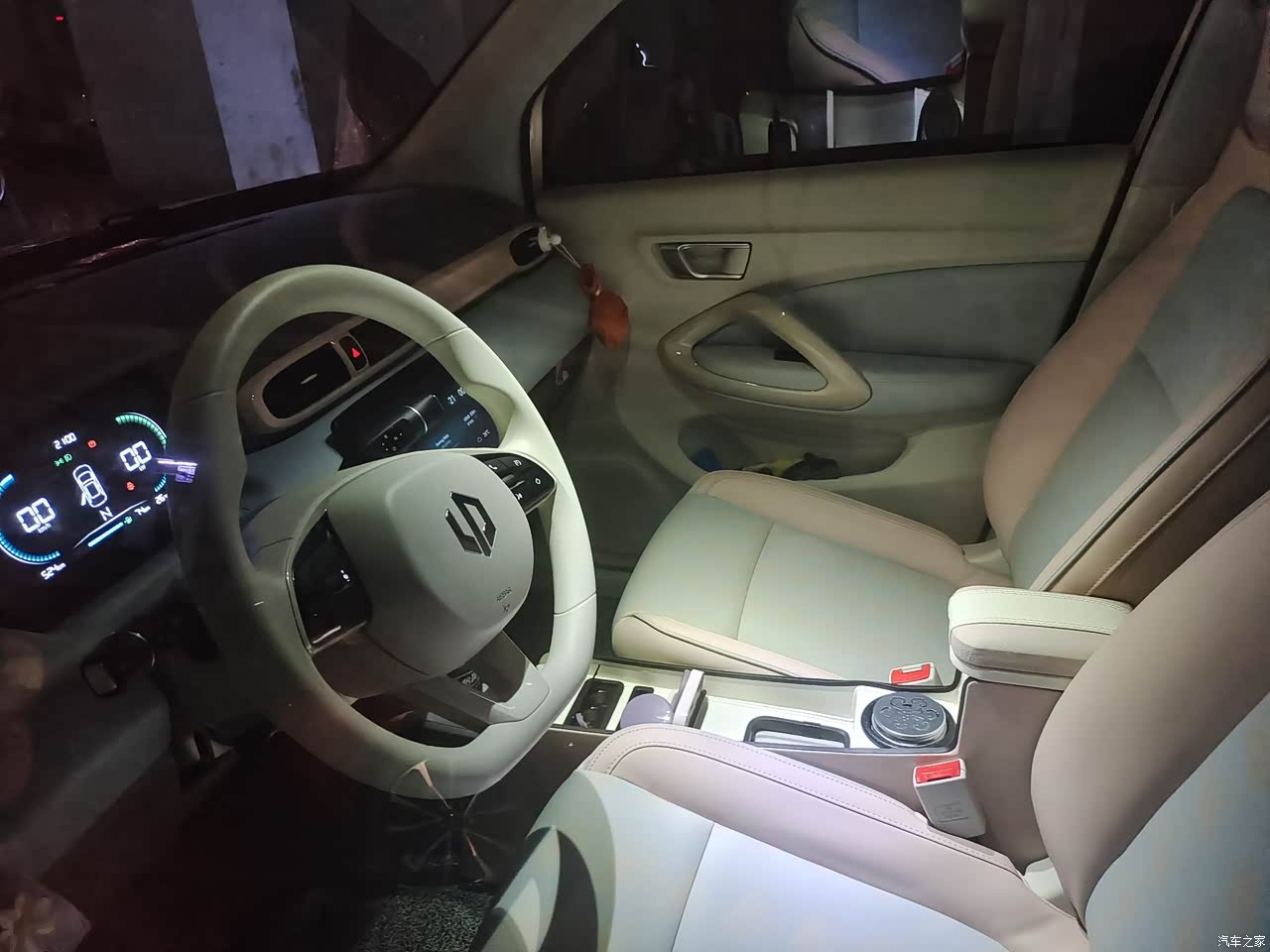 内饰颜色选了粉+蓝,座位是皮面的,质感不错,新车异味不算太重,散几天味道就好了,空调足够凉,不是太热的话我一般开1档,手扶箱要自己买,不然踏板附近是连通到副驾的,就不太安全,还是要买扶手箱的。