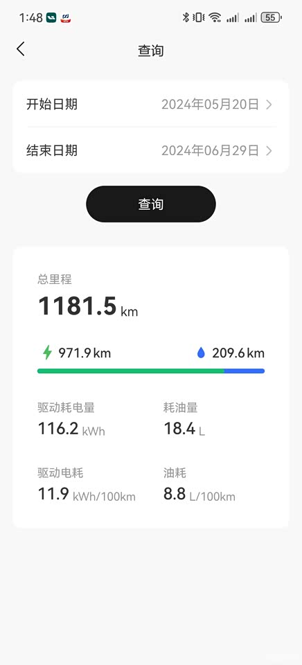 目前邯郸到了高温了,空调都得提前开,大概能跑个160公里实际,表显电耗才12,后续开的久了再补充,油耗8是因为亏电时候开的高