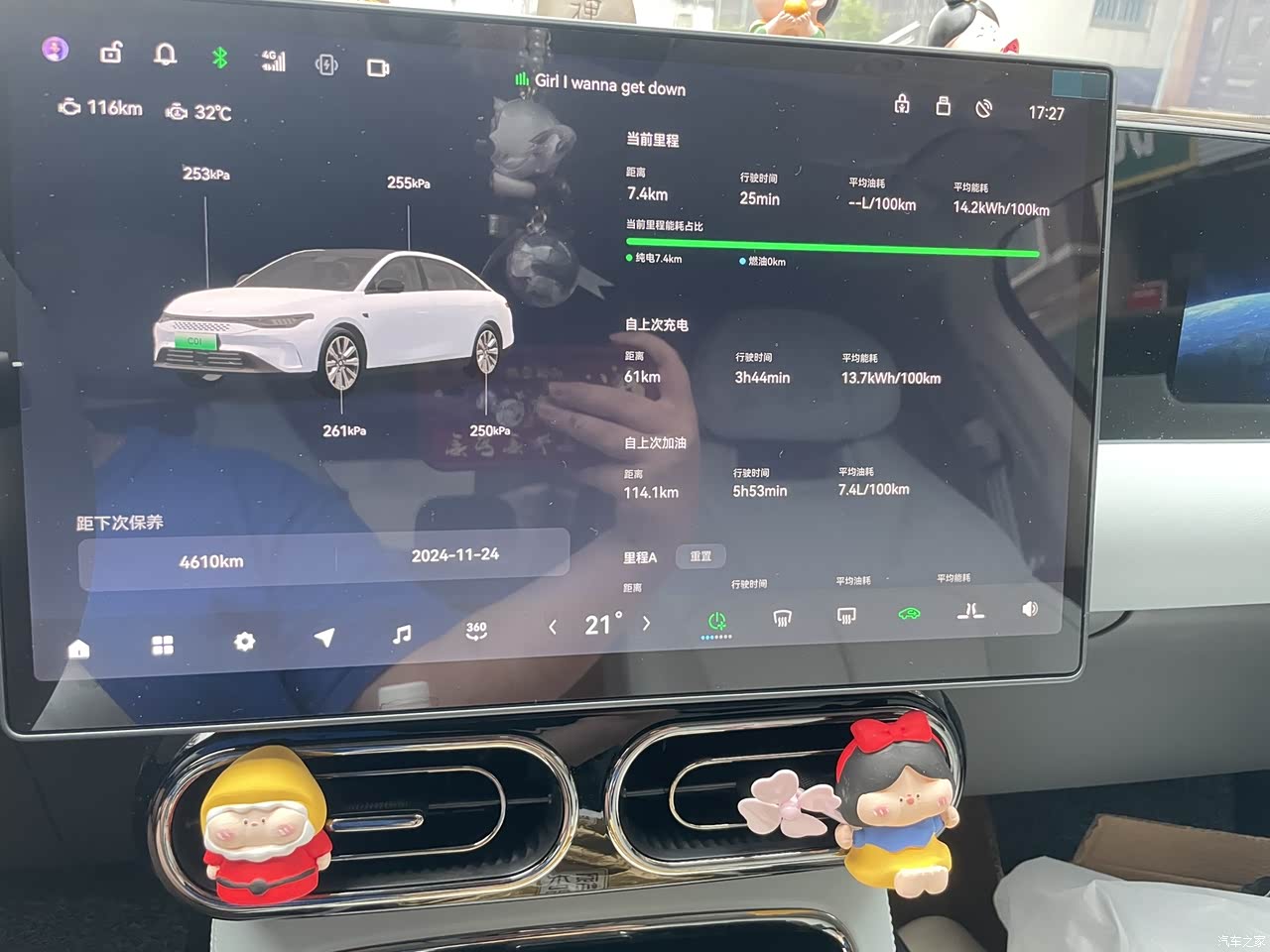 中控以及车机系统,足够智能,车辆的实况信息展示的很清晰明了,胎压、里程数、充电加油时间都很清楚。倒车影像也很清晰。其他功能的使用也没有卡顿一说。