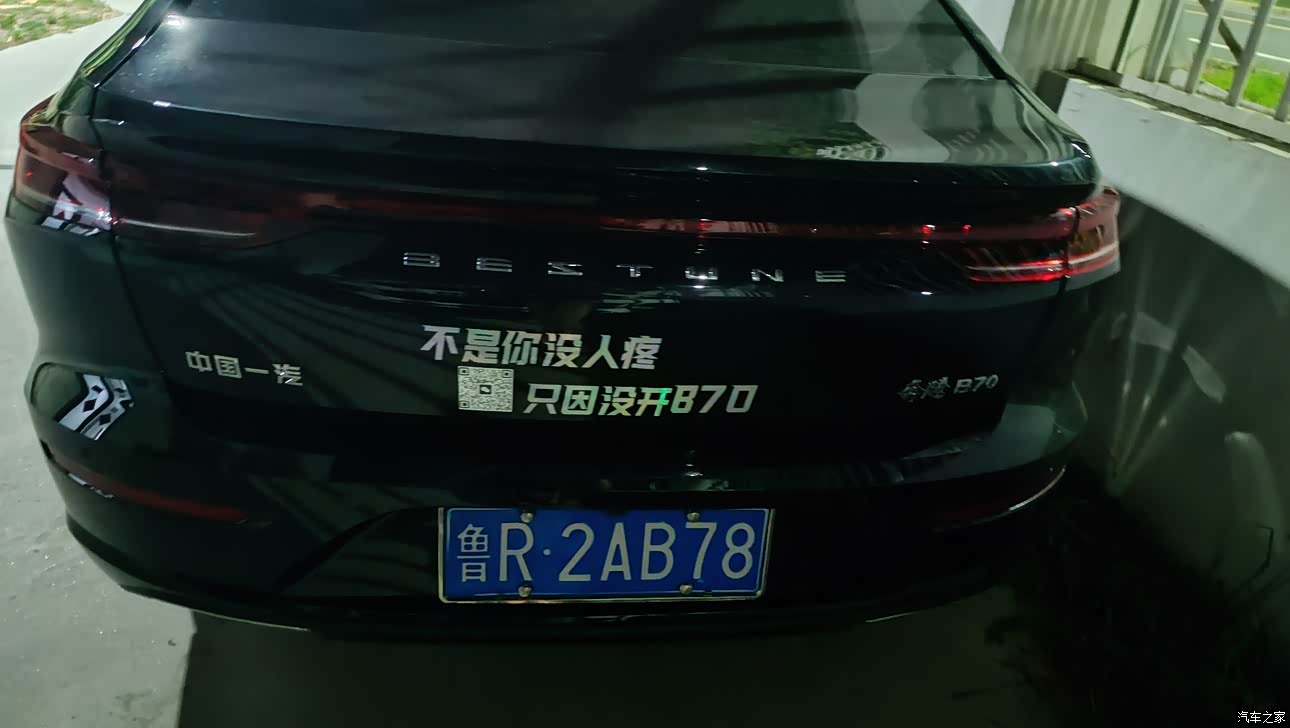 领跃型奔腾B70前面的进气格栅银色镀铬条装饰的非常完美,大灯晚上够用!