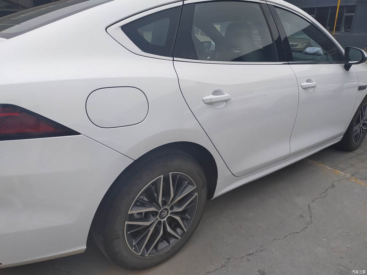 作为一款纯电车型,相比较于插电混动版本来说,是更加简洁一些的,毕竟包裹式前脸造型也算当下新能源常用的设计理念了。而车辆前照灯外观看起来较为犀利一点,通过透镜去看,内部灯组排列整齐,点亮时是有着较高的视觉感受的。车身侧面较为修长,并且车身高挑,线条层次感强,前后翼子板扎实,多辐式轮穀也很稳重。尾部依旧是贯穿式尾灯,夜间点亮时辨识度较高。