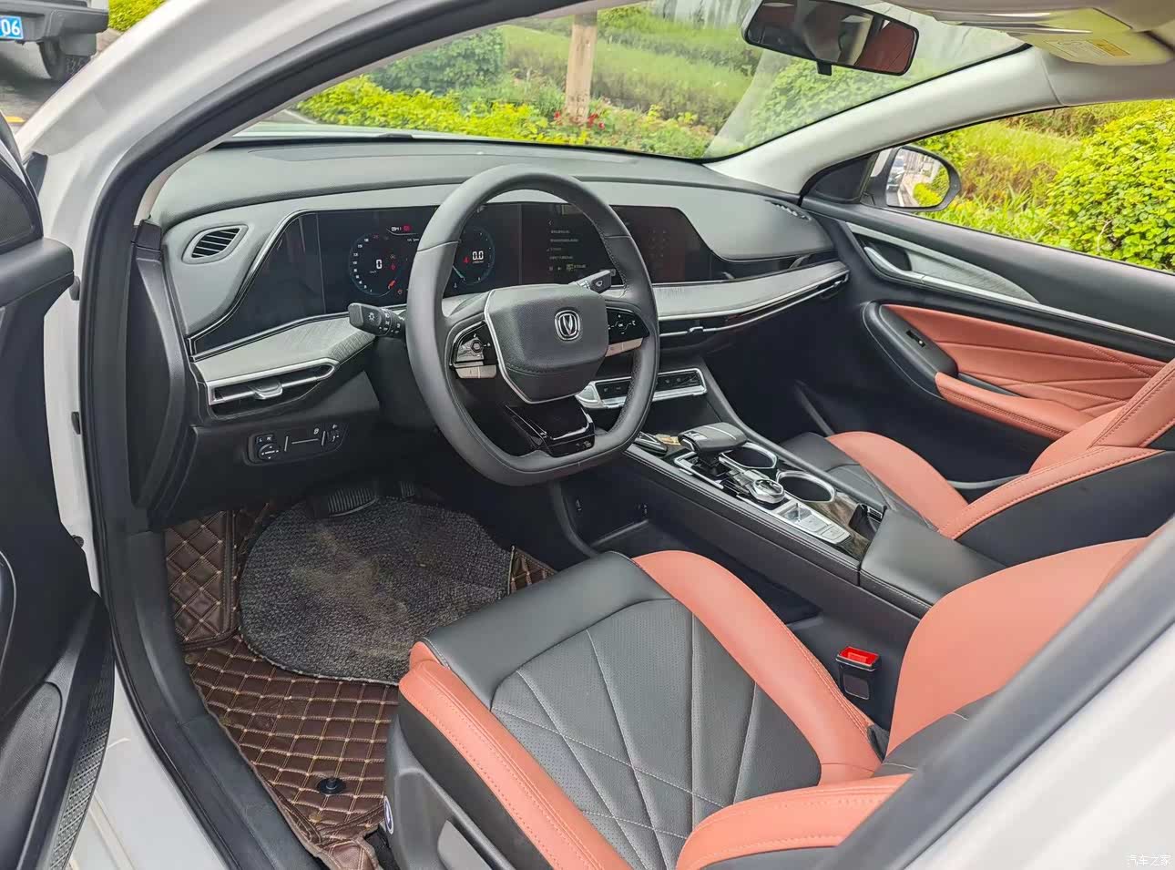 中控屏幕是10.25英寸的,看起来视觉效果好,而且提升了内饰的大气程度。换挡把设计造型独特,手感舒适。内饰颜色我选的是黑色和星云红的撞色搭配,视觉效果很好。座椅是仿皮的,不过乘坐舒适性是很好的。有自动空调,后排也有出风口。