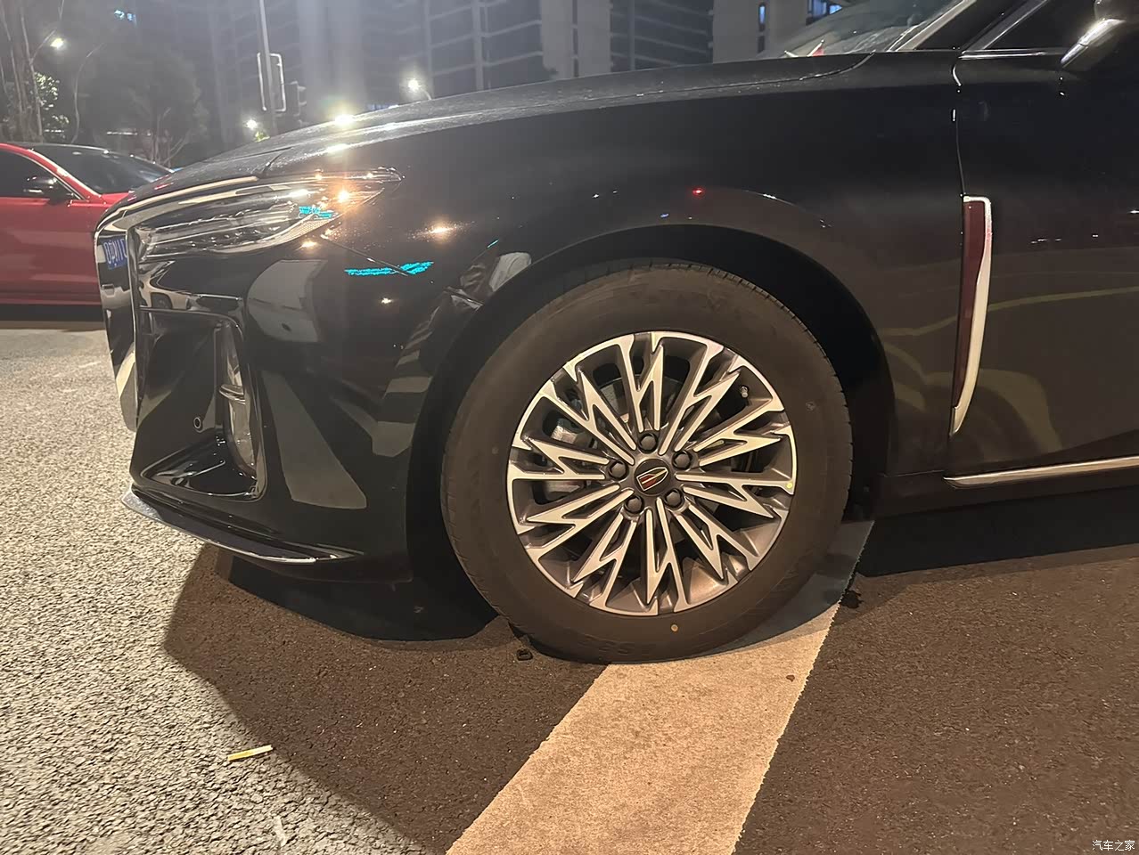 车身做工很霸气,其次最喜欢的就是它车头,狼牙灯,和水滴中网 ,特别晚上车头看着更帅#成都红旗车友会