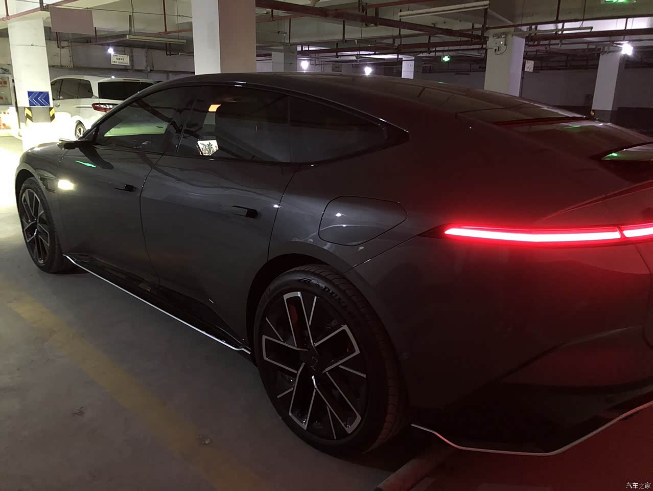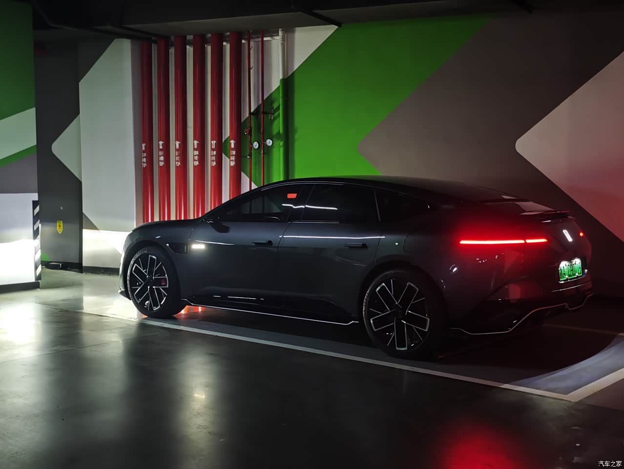 前后logo灯和迎宾灯的设计非常炸裂,开出去辨识度极高,整体车身流线设计理念超前。电子外后视镜和尾翼也是吸睛亮点