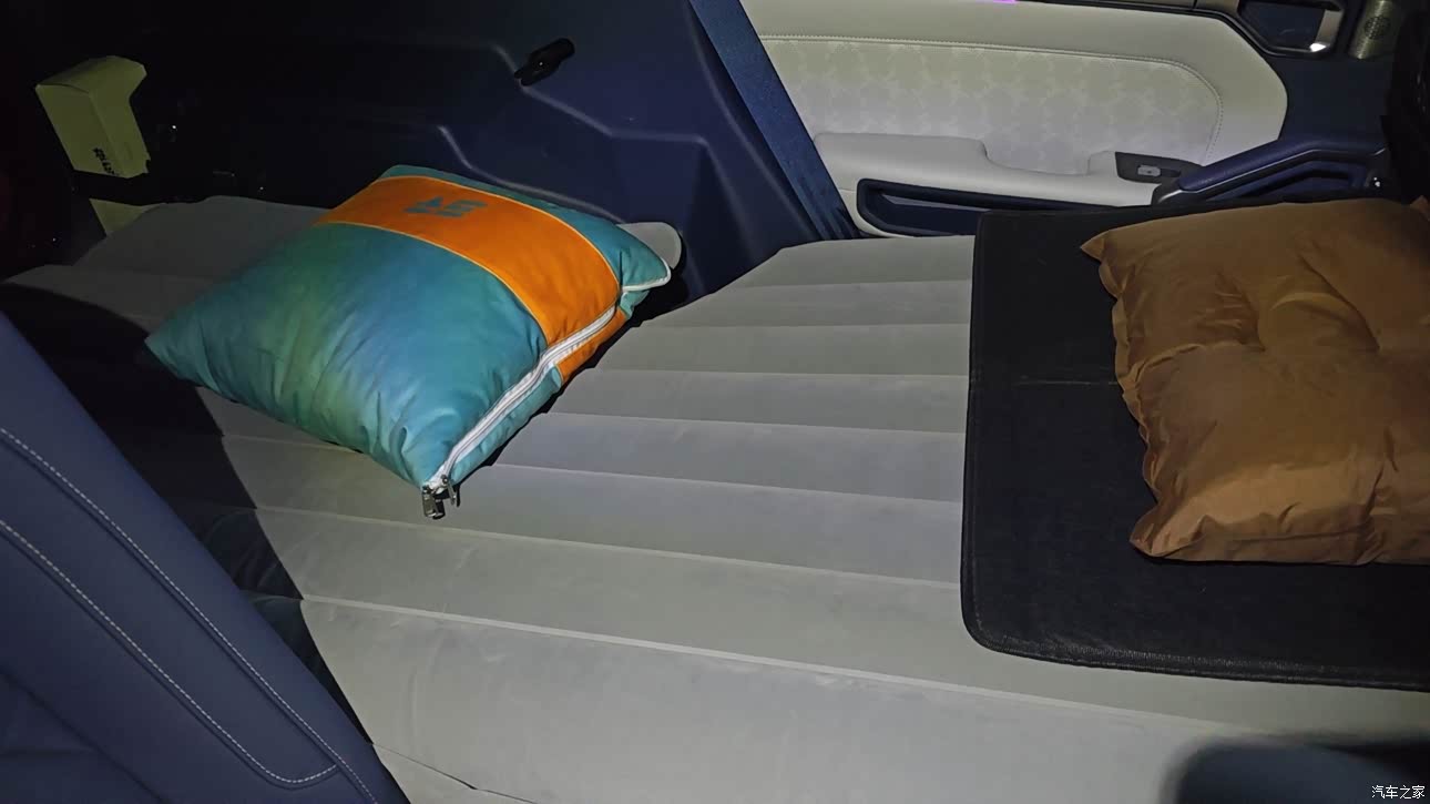 蓝白内饰,非常好看非常年轻,凸显新能源风格,放个充气床垫,满打满算弯曲着腿可以躺的下