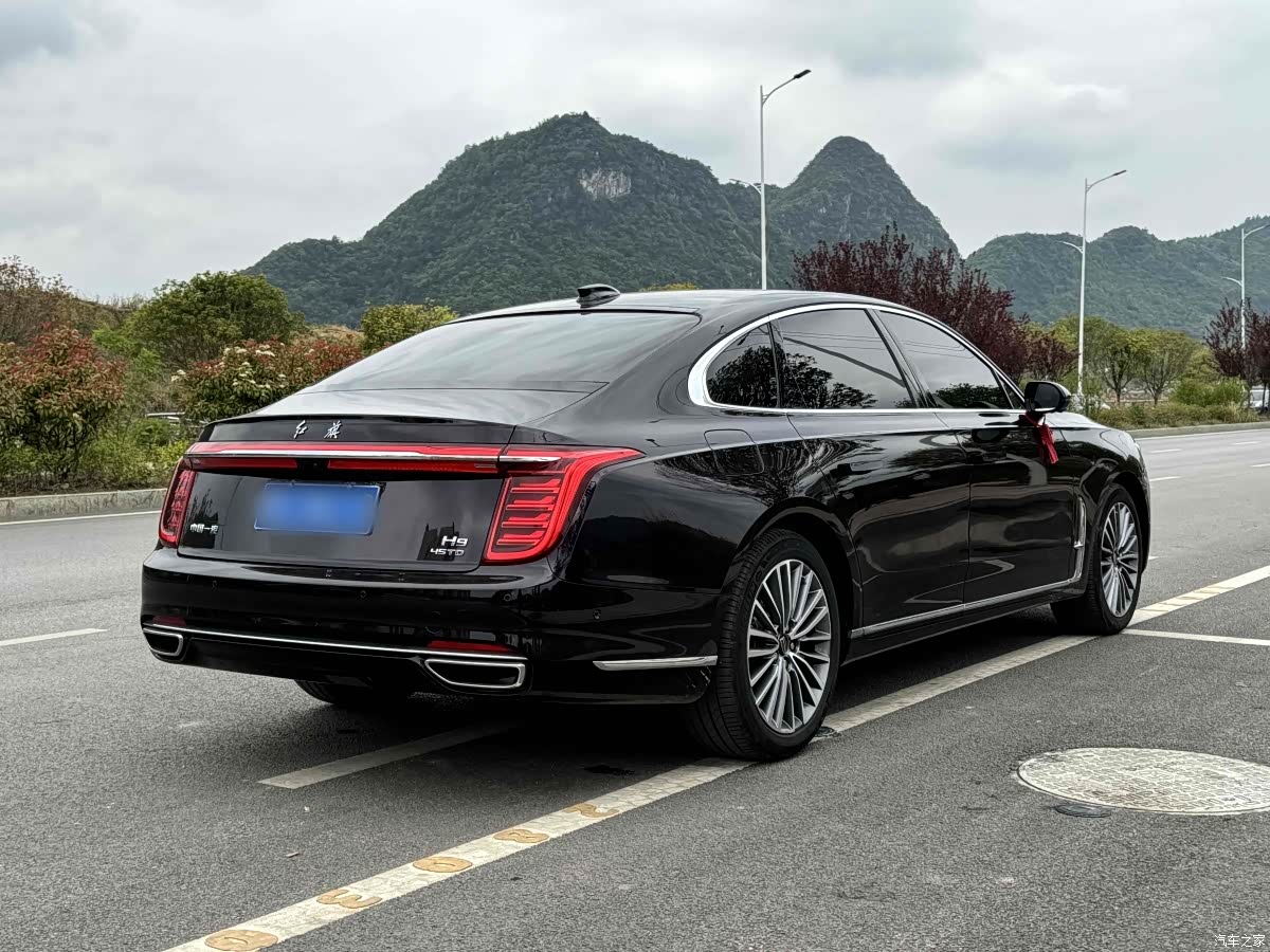 外观沉稳大气,一看就是很符合中国特色和民族特色,很适合豪华庄重的场合。 前脸是宽大的U型中网设计,引擎盖上是红旗品牌特有的红色装饰条,具有非常强烈的品牌特色和昭示性。车尾除了有贯穿式的尾灯,还有有双边两出的排气,提升了外观的运动性。H9设计了隐藏电动门,侧身看更加融合。 外观车漆颜色也都是很符合H9的气质,我觉得这么庄重的车就黑色最好看。