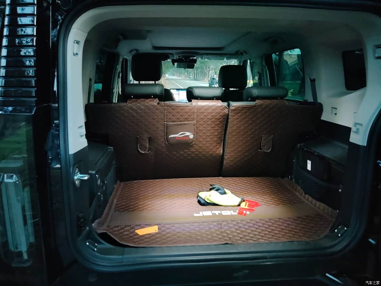 五座的设计,后背箱的距离比较小,但是高度比其它车型都高,改装后的收纳空间还是不错的。后座可以直接翻起后靠背方平,空间就增加很多。