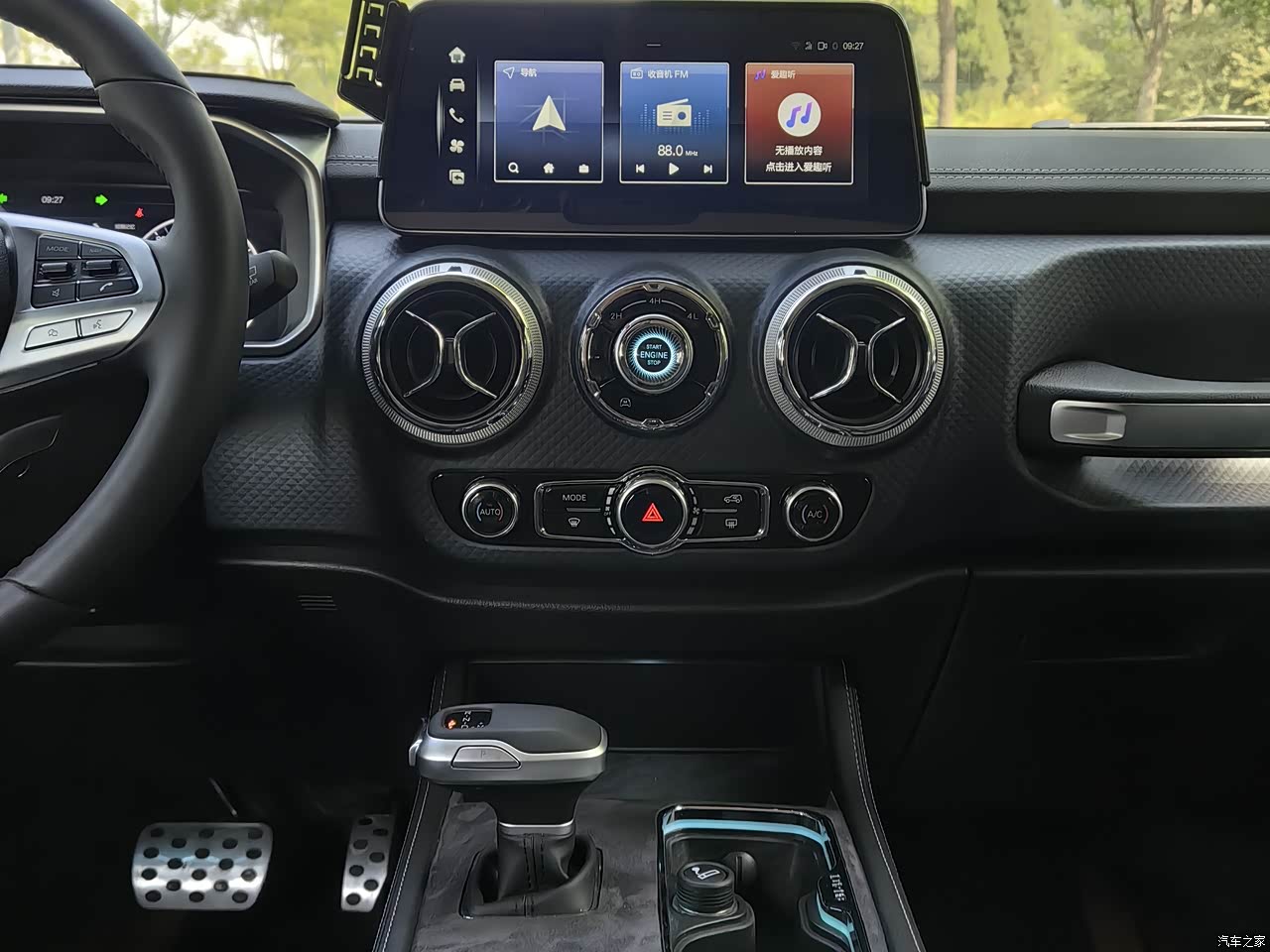 越野必须得非承载式车身,后桥差速锁都是有的,当然现在比较流行的车联网,语音识别系统也都有,但车机感觉不太好用,像个半智能的,应用也比较少。