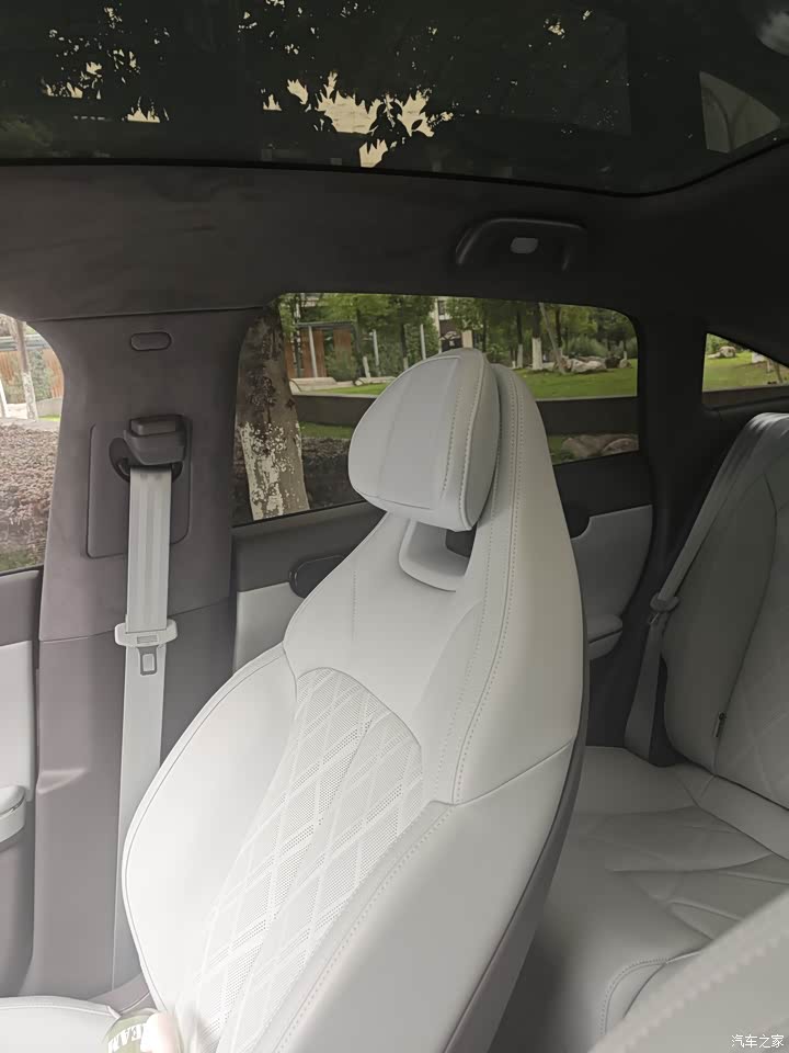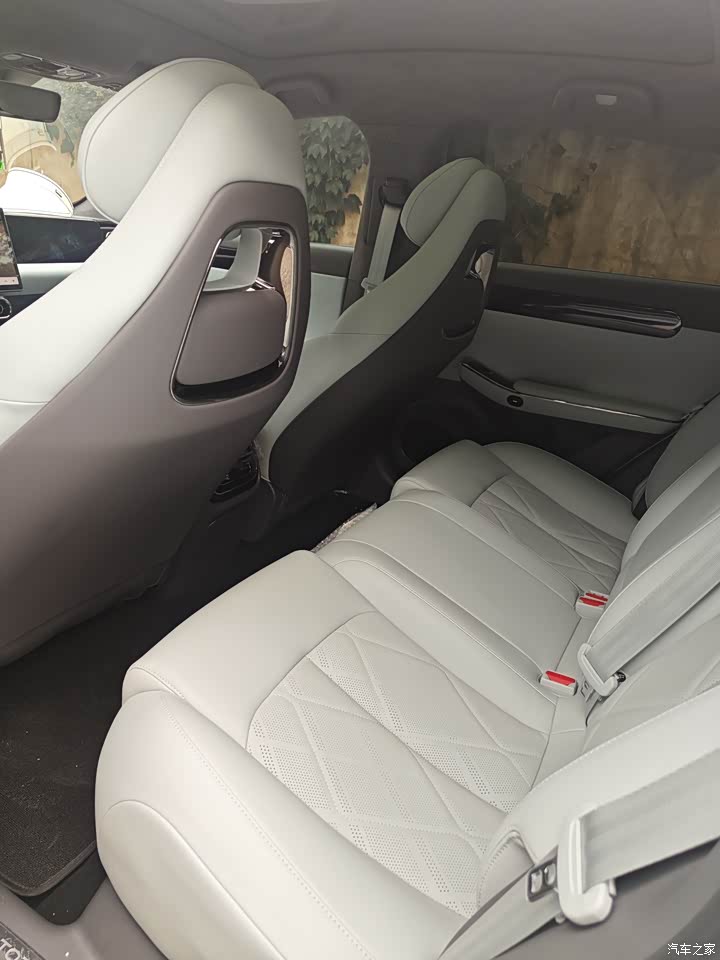 内饰选的是天青色,加真皮座椅选装包,这个颜色和选车时app显示的颜色不一样,比显示的好看太多了,实际是比较淡的那种浅色内饰,我很喜欢。内部的大面积都用了皮质包裹,看起来比较有质感,中控台的三连显示屏提升了整体的档次,坐着视野看起来挺开阔,内侧的空间对我来说有点点不够用,座椅坐起来也挺舒服的。