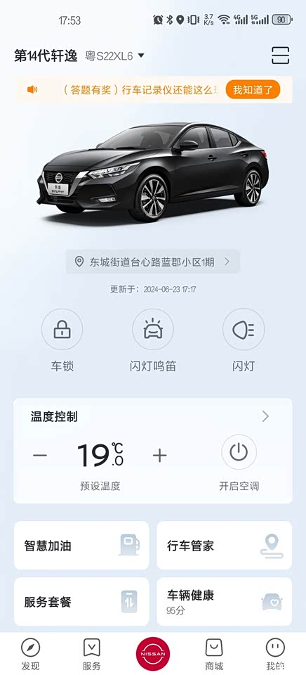 14代轩逸的远程开启空调这个功能非常实用方便,夏天到了,广东的天气非常炎热我的爱车又是黑色的所以车内温度特别高。远程开启空调,可以让我回家前提前开启空调,给车内降温,让我上车时车内的温度降下来,座椅方向盘不烫手