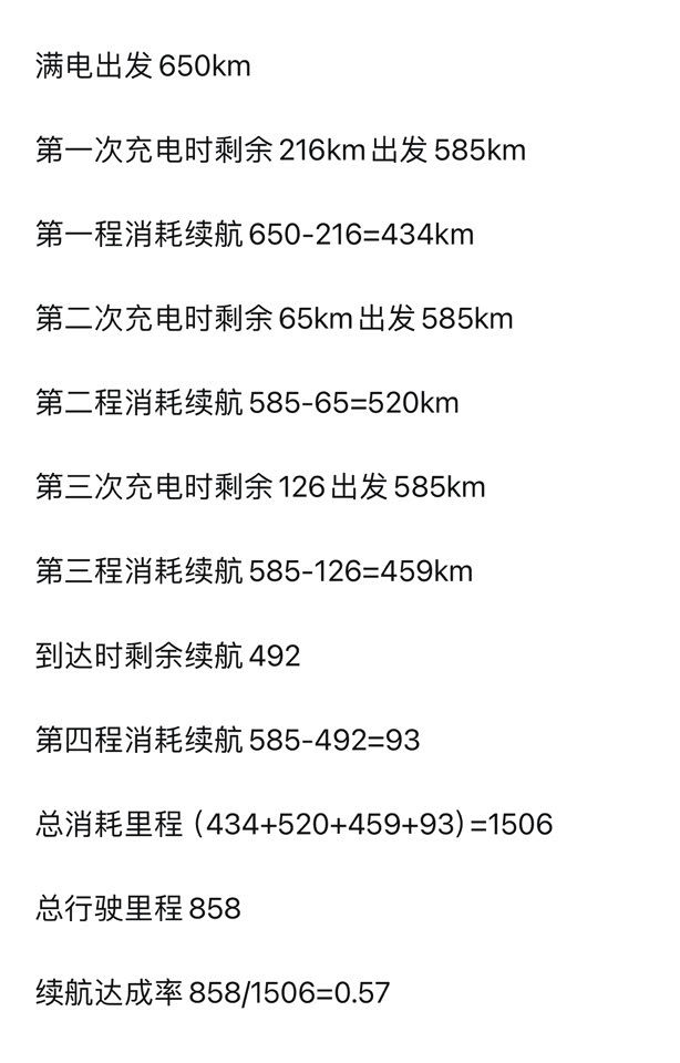 续航和电耗方向相比同时期的800v碳化硅车型确实电耗会偏高一些,这也是之前很多人顾虑的点。我开了这大半年时间,从冬天到夏天,整体情况也比较了解了,下面仅仅是我这人的使用情况(四驱、21寸大轮毂)。 冬天的电耗在22-23左右,续航基本要打6折左右,夏天电耗在18左右,续航在8折左右。 图片是春节回老家800公里的续航测试。