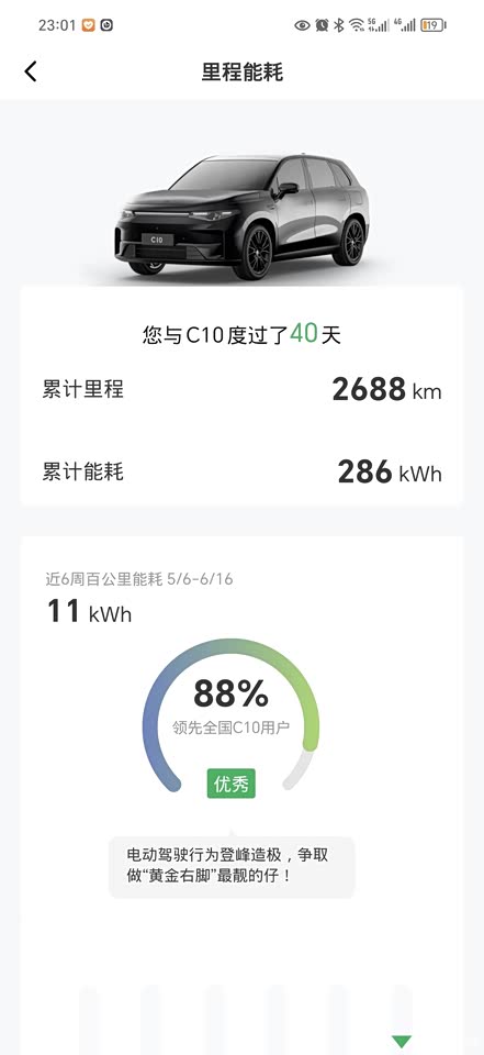 这车开着感觉很有力,运动模式下,加速感觉特别快,真的很爽,赞一个!刹车还能给车补电。我现在电耗一般都在11左右,应该算低了吧。驾驶零跑C10真的超静音,各种模式都能满足我的需求。怀档设计很方便,整体驾驶感受很棒。