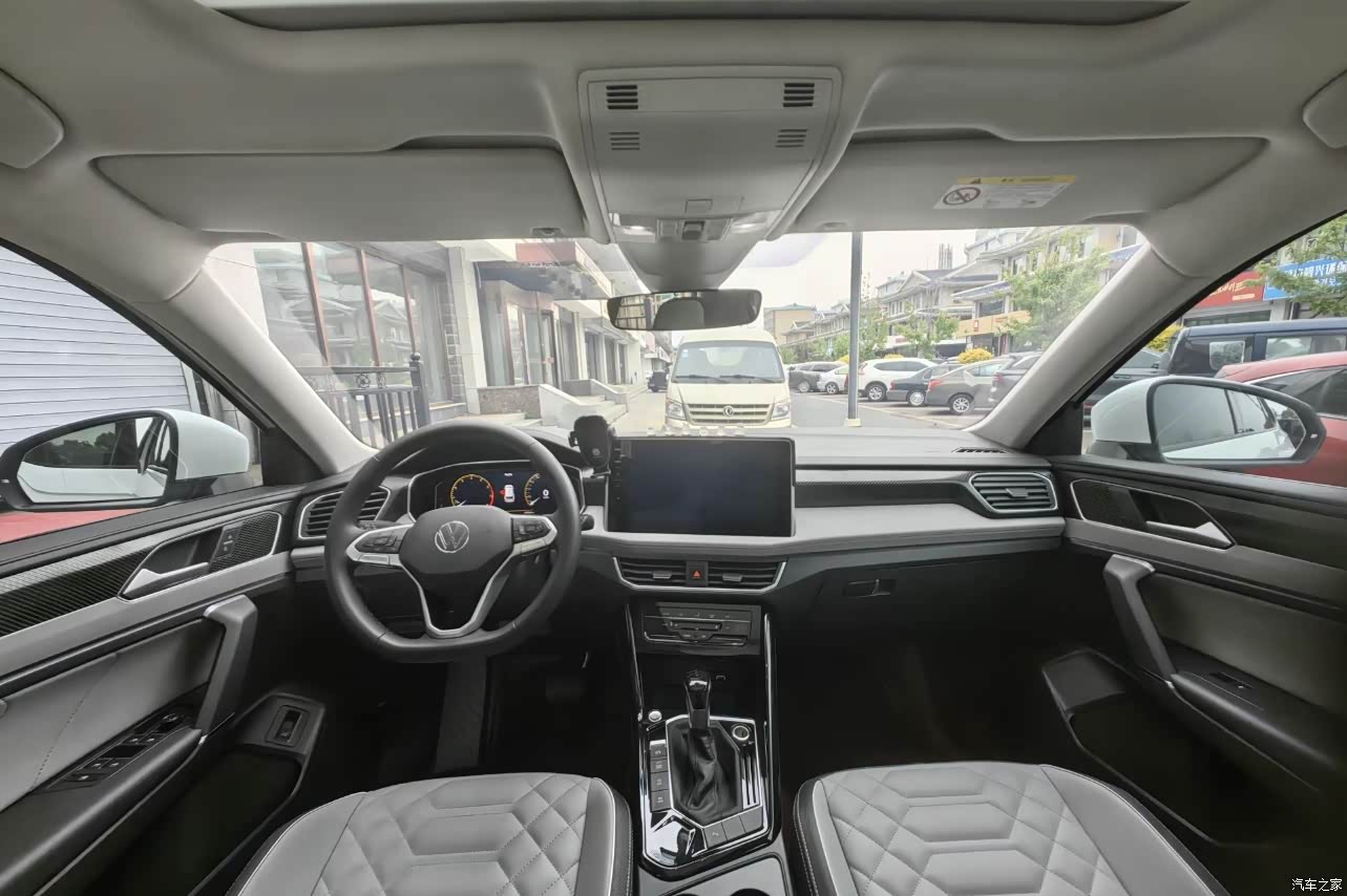 内饰的整体设计风格就是经典的大众家族化设计,虽然看着不是很豪华,但是倒是挺简约实用的。中控屏幕的尺寸我感觉刚刚好,操作起来也很顺手,里面的功能和设置的操作逻辑都很简单,开车的时候调节很方便。座椅的用料还算不错,虽然是仿皮但是摸着也挺软的,看着还是挺有高级感的。座椅上的缝线工艺很漂亮,看着很个性。这套内饰唯一的不足就是异味有些大,如果新车味小一点的话就完美了。