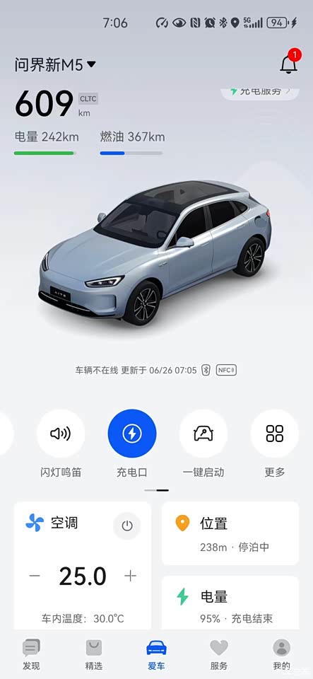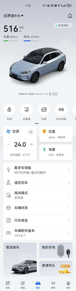 ①常用的:远程操控、车辆状态查看、车辆警告提醒、找车等都有了。②我最常用的是:提前开空调。