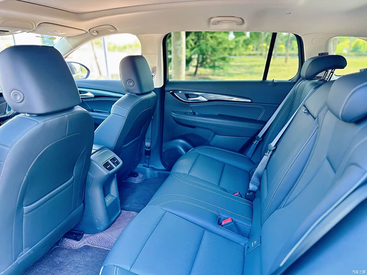 整个车空间很宽敞,而且它的地板是几乎接近纯平的,只有中间有一点点小的凸起,如果你平常能后排坐三个人的话,中间那个人最起码他的脚不会特别难受,但是我这车上基本上最多只做个四个人。所以空间对于我来说绰绰有余。座椅的平整度也还行。但是副驾驶那个位置如果个子比较高的话,它的左面儿会有点顶腿,你只能把座椅往后挪。
