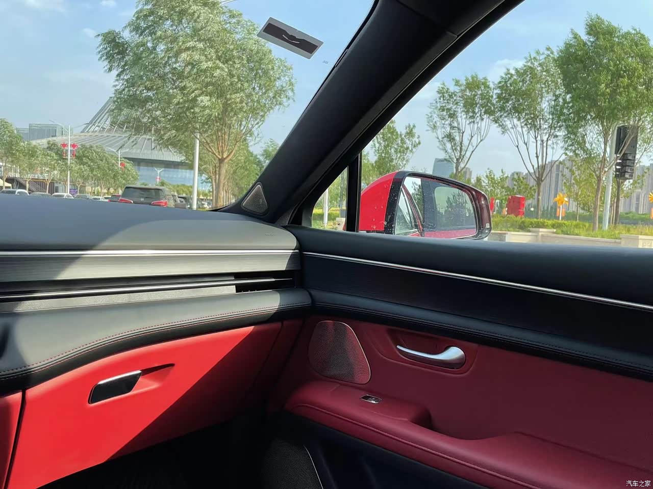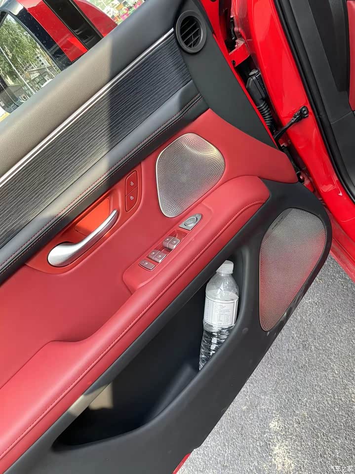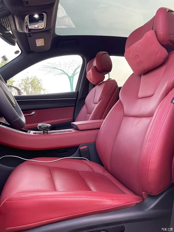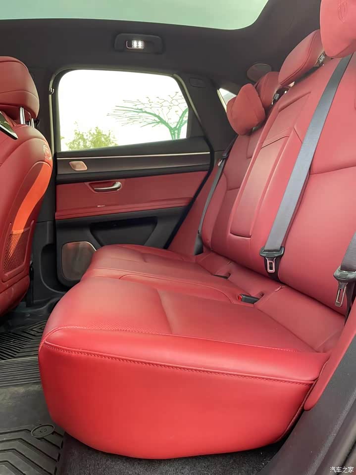 我的小5选择的内饰是黑红拼在一起的,我感觉红色和黑色非常的般配,仪表台上是黑色的在你开车的时候不会抢眼,影响正常驾驶,然后座椅和小部分位置是红色的,就又能彰显它的运动和时尚,然后这个M5内饰用料也非常扎实,真皮方向盘 门板上的木纹饰条,然后他的前后排座椅也都进行了升级,乘坐舒适度得到了很大的提升。