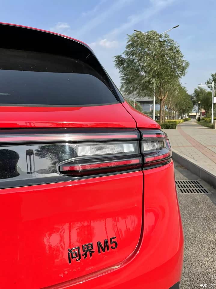 这次新问界M5改款听取了很多客户的意见,前脸的格栅去掉了,从大嘴变成了一个小嘴,让整个前脸变得更加精致好看了!这个改动是最明显的,然后这次除了RS运动套件版本,我也购买的这个版本,他带有一些专属的运动套件,车标 轮毂 还有侧面都有一些熏黑的套件,让小5看起来非常的运动时尚,然后它整体的线条也是一个小溜背,让人看起来非常舒服 路畅~总的来说呢就是这次问界新M5的外观升级非常成功,让它成为了一台非常耐看,越看越喜欢的小车子,大都会红的外观颜色也非常适合我这个人的个性和审美~这个红非常大方 靓丽,让人们在远处看到它的时候就能一眼认出来,并吸引~