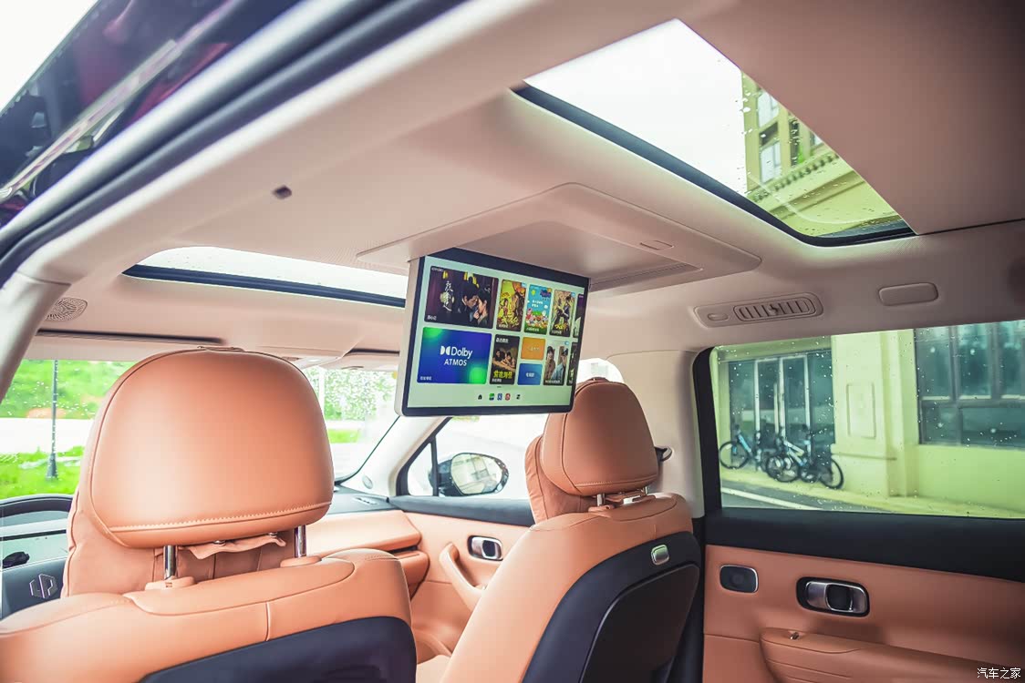通过陪同试驾的身高172cm的专业试驾员的身体直观展示,主驾席的头部、腿部、横向空间都可以说非常宽裕。第二排座椅得益于平整的地台设计可电动前后平移,靠背电动调节几乎可以平趟。独立的座椅都设计了可上下调节的扶手!第三排座椅相对竞品无论头部还是腿部还是横向空间都更加宽裕,尤其是向后倾斜的宽大靠背和标准化的头枕设计,让第三排坐起来比第二排都舒服惬意。同时第三排靠背还能一键放平,更好的拓展行李厢空间!