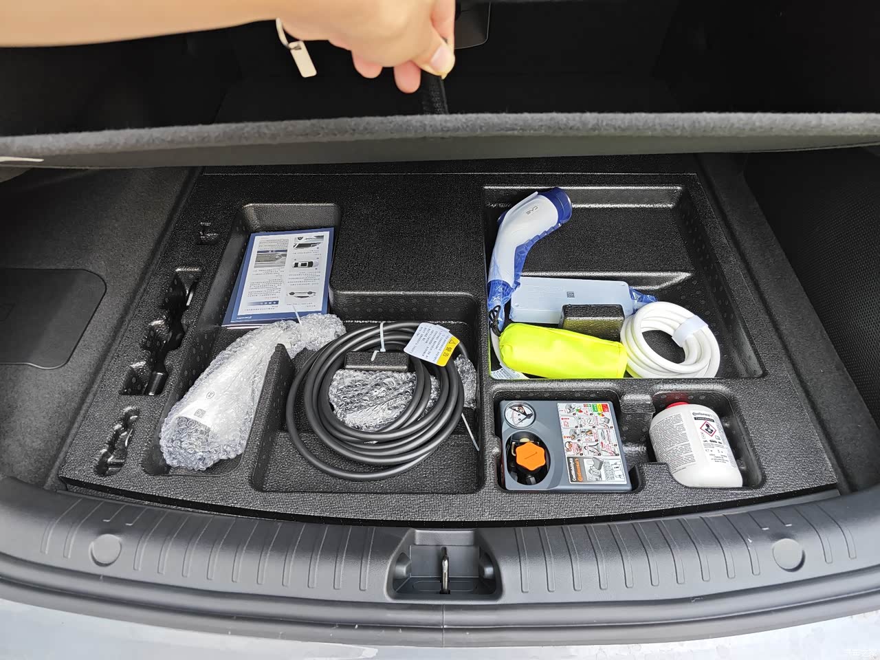 环抱式座舱设计,再加上用料上的真材实料和细致做工,整个空间坐上去非常舒服,腿部和头部的空间都可以随意的伸展,受制于底盘电池的布局和电力控制系统的限制,后尾箱的空间稍显不足,即便省去了备胎,地台的高度还是比较高,纵深还可以,基本能日常的用车需求。