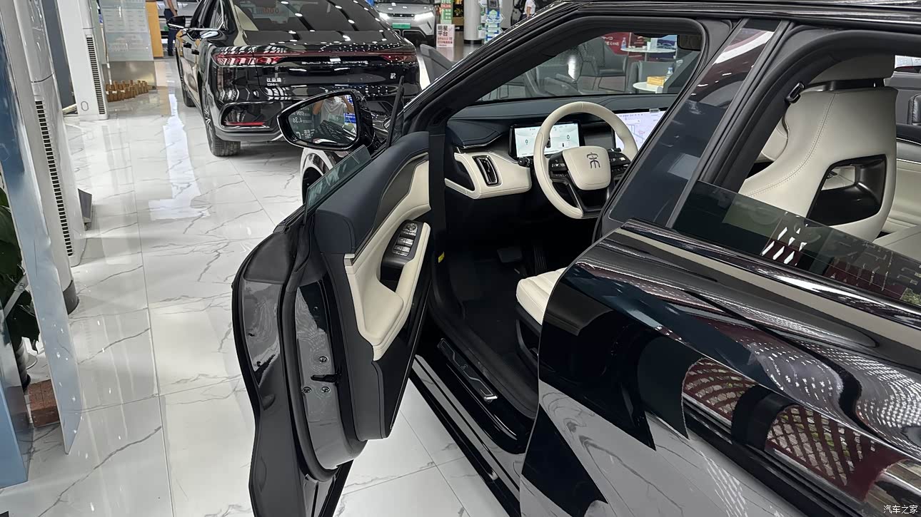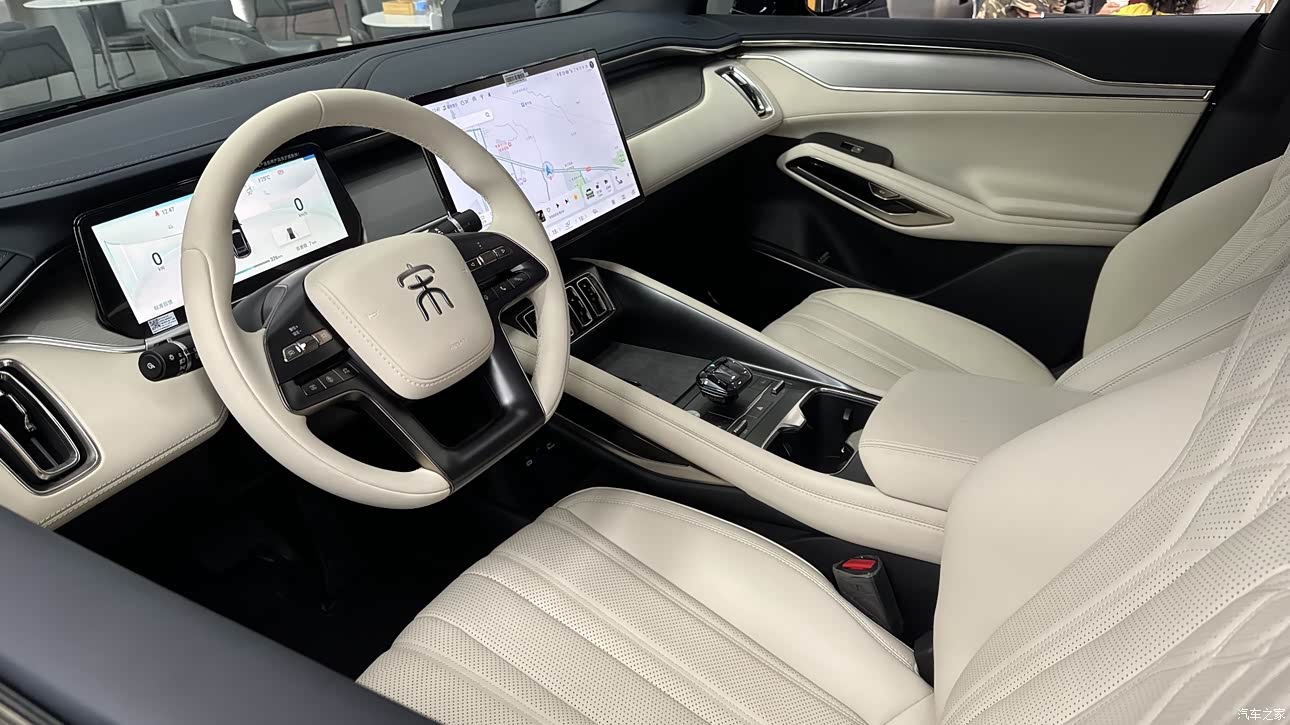 虽然是最低配,但是配置可一点都不低。APP远程控制不仅可以车门控制还可以充电管理。10.25英寸的液晶仪表盘和15.6英寸的中控大屏都很显诚意。主副驾都是电动调节的,隐私玻璃。