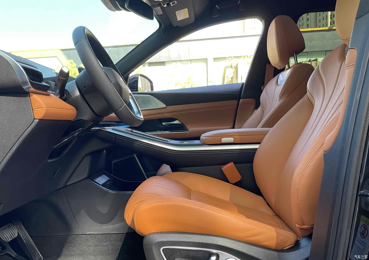 内饰设计是新能源车一贯使用的简约风格,把很多功能都给集成到中控屏里,整个内饰看起来简洁干净,而且很有科技感。我非常喜欢这个黑棕的内饰,高级优雅,而且还耐脏,两三个月不洗内饰都看不出来脏。