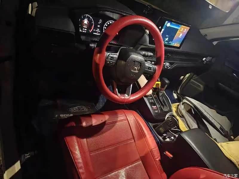 内饰有点老气,座椅也都是织物的,没有上皮革,前排的贯穿式空调出风口还是蛮不错的,然后空调什么的也有实体按键,就是可能有点太简约单调了,然后一眼过去都是黑色,我包了一套红色的座椅这样视觉上会好一些,内饰大面积的都是那种搪塑材质的,看起来有点廉价,新车会有异味