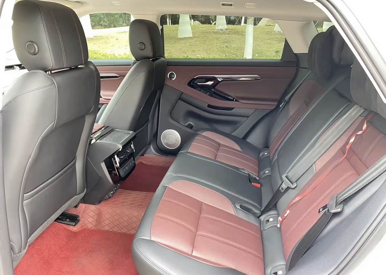 这个车厢内空间的设计真的很用心,里面既宽敞又舒服。司机的位置很大,开车的时候感觉很自在,就像是开着船在大海里一样。座位做得很好,既有现代科技的感觉,又有传统工艺的精致,坐在上面不管是短途还是长途都很舒服。地板上的空间足够大,坐起来不会觉得挤。就算我把座位调整到自己最舒服的位置,后面的人也还有足够的空间,可以把腿伸直,感觉就像在自己家里的花园一样。有些需要吐槽的是地板中间有凸起,后排中间不适合乘坐大人,要不然腿只能放在两边,这是设计的不太好的地方。后座的靠背设计得很好,能很好地支撑住背部,长时间坐着也不会觉得不舒服。