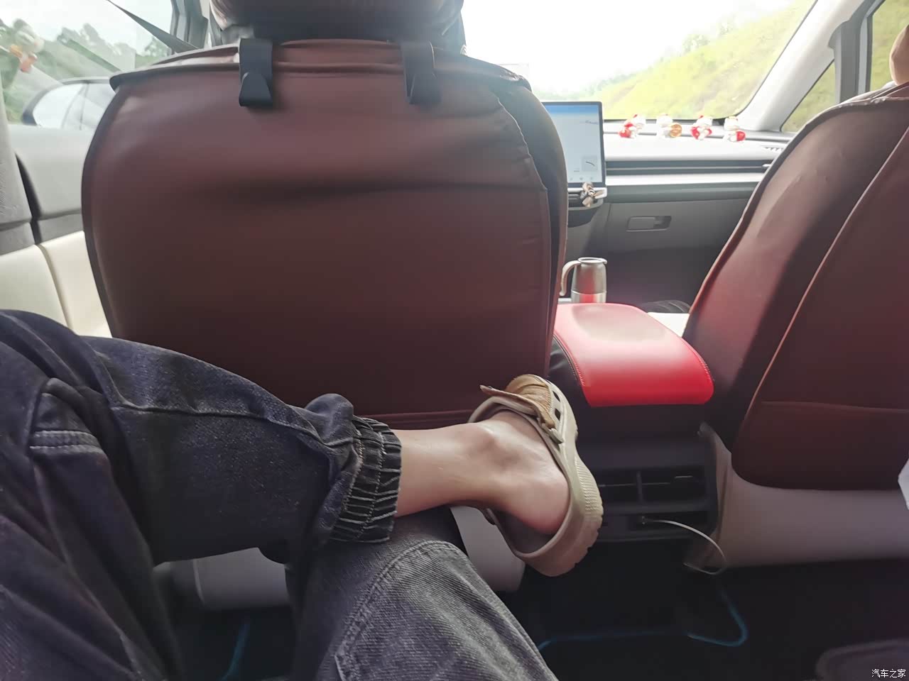 个人身高1.75进去后排就是二郎腿,同级别无敌,更别说前排180度和90度都可以,会客厅,懒人沙发趟都可以在这车实现,同级别无对手,能打哎安也不够看哟,亲自坐下就知道了,后备箱也是比较大的,惊喜的还有两层,收纳方便的,前面正常角度后备箱能放4个大箱子和4个背包呢,这车空间设计亮点很多,整车很通透宽敞舒适的,后排有一臂的距离,非常的夸张,后排能7档调节点赞,后面人和前排说话身体得往前倾小孩后面看屏幕都喜欢往前站位,因为太远了,嘿嘿!