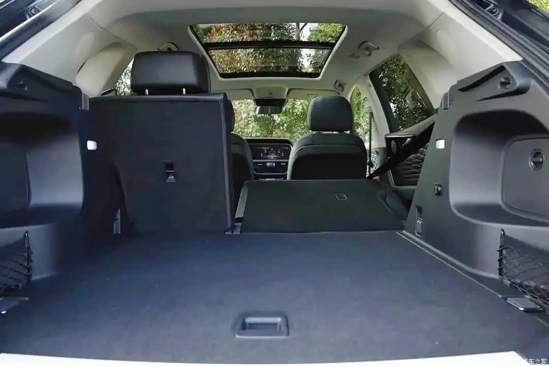 内饰质感强,配置丰富,有手机快充、手套箱、扶手、两段式全景天窗、杯架、小的电源加USB typec接口、空调出风口、电动尾门、流媒体后视镜等