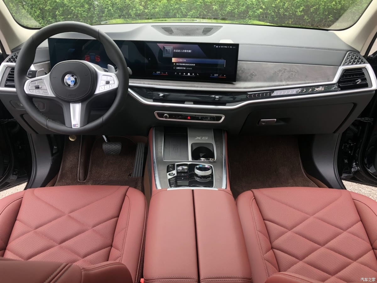 内饰让我感觉到豪华,对于55万的X5来说这应该也是基本要求,彰显宝马的品质和工艺。内饰中的真皮和木纹装饰相互交错的设计无论手感还是视觉效果都比较ok。 现在的宝马内饰中控区域基本都是液晶仪表盘和中控显示屏设计成双连屏,确实比较有科技感。 真皮座椅透气性很好,对人体的包裹性也很好,而且前排座椅的可调节范围多且广泛,轻松找到最适合自己的座椅角度和驾驶姿势。即使后排乘客也能感受到舒适。总之就是舒服。