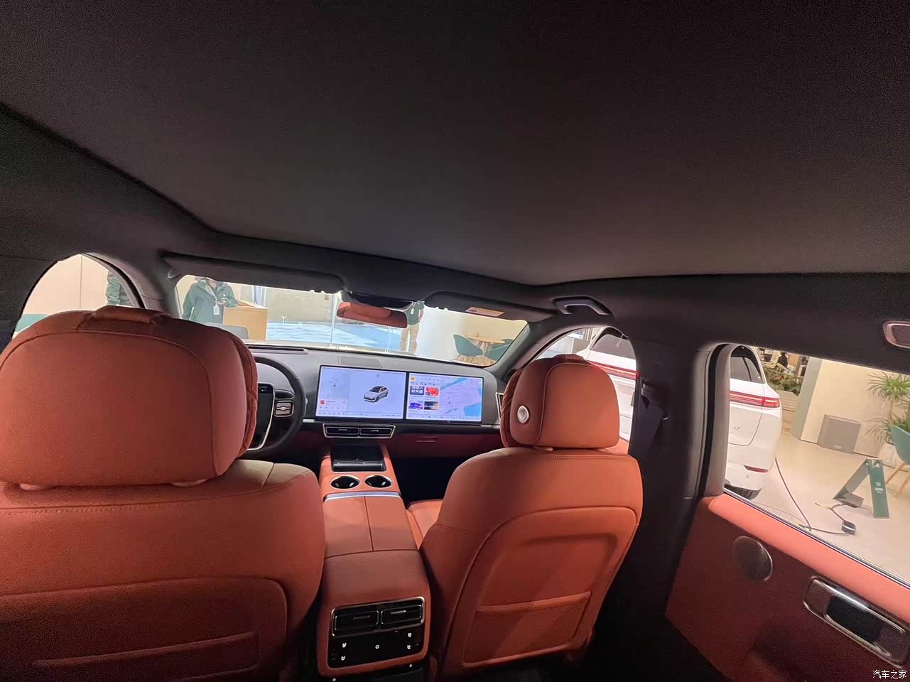 内饰选的爱马仕橙,之前在白色和橙色之间摇摆,但考虑到白色不好打理最终放弃了,内饰大面积皮质包括,豪华的氛围感营造得恰到好处,加上两个15.6寸的大瓶科技感还是比较足.