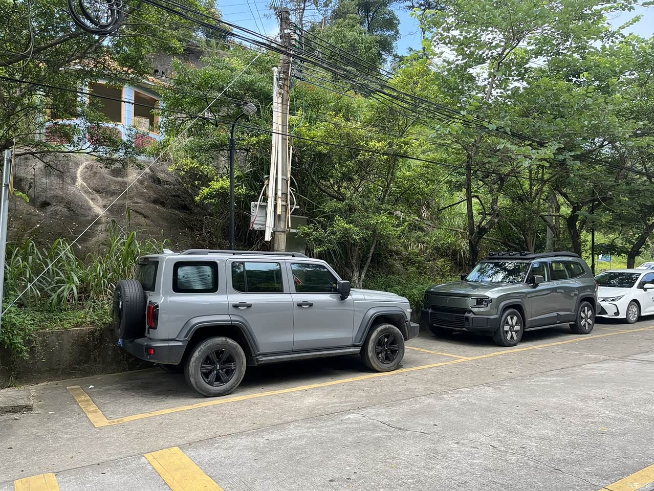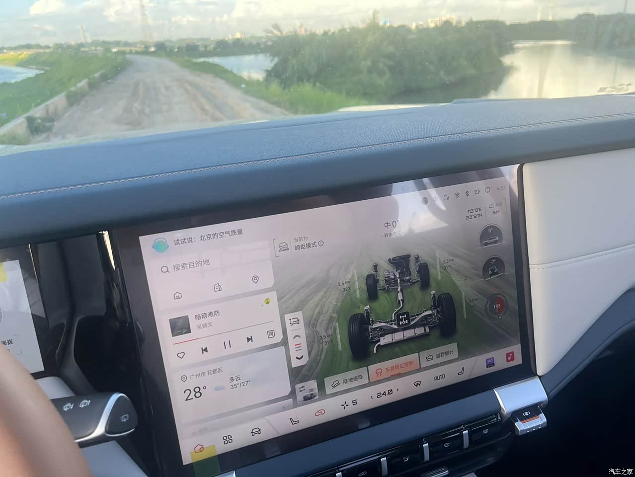驾驶性:满意,加速好,动力随叫随到,四驱开起来稳;上了四次羊肠山路,转向都很稳;爬坡力道随叫随到,没有负重感;方向盘不重,我自己感觉力道刚好,刹车灵敏。 有一定脱困和通过性:前两台车虽然是SUV,但是在泥地困过三次,排气管磕过两次,这车给我足够安全感,四驱+两把锁普通脱困够用了,底盘电池离地比较高,不容易被磕碰;有多重脱困模式,尝试了下崎岖模式走炮弹坑路,平稳轻松,安全感十足。 驾驶舒:空气悬架滤震感好,整车的静音性非常好,启动时听不到杂音,听不到发动机声音。时速到了90km/h风噪才有一些感觉,毕竟方盒子迎风面积大,又有顶部探照灯,速度越高风噪会越明显,但整体比我原来合资大SUV好些。