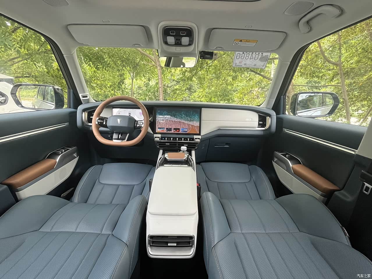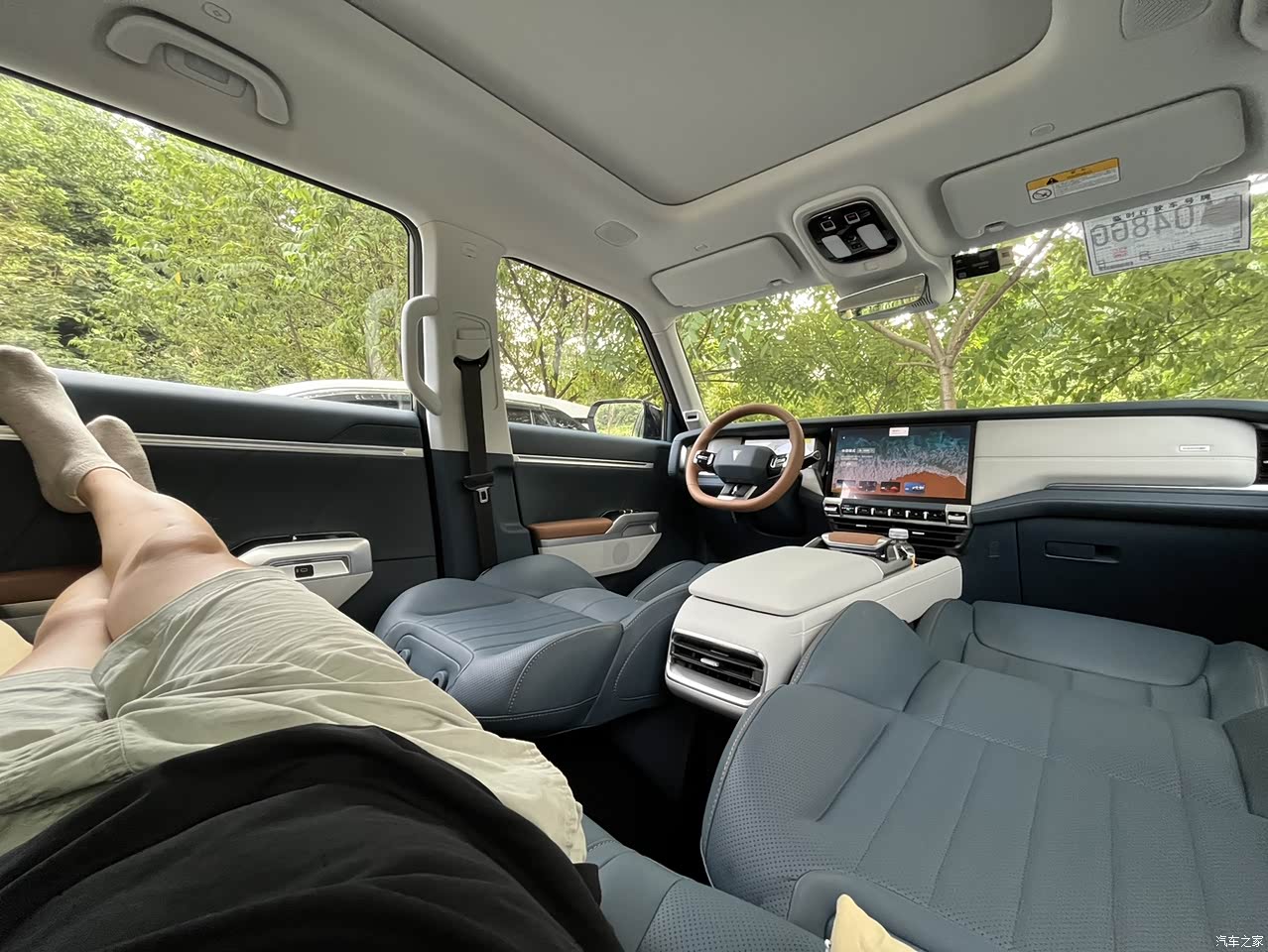 整体满意: 方盒子给的大五座空间是完全够的,特别是头部空间,比我原来的合资大SUV还偏大,座椅的包裹性也舒服。座椅支持前排放倒和后排放倒,休息场景够用。 期待改善地方: 中控台杯架少,只有1个孔位放杯子,另外一个太浅了是放钥匙之类的,放杯子孔位不够用,要两个最好。 中控台下面的储物柜不方便取物,要把座椅往后移动才方便把手伸下去放东西。