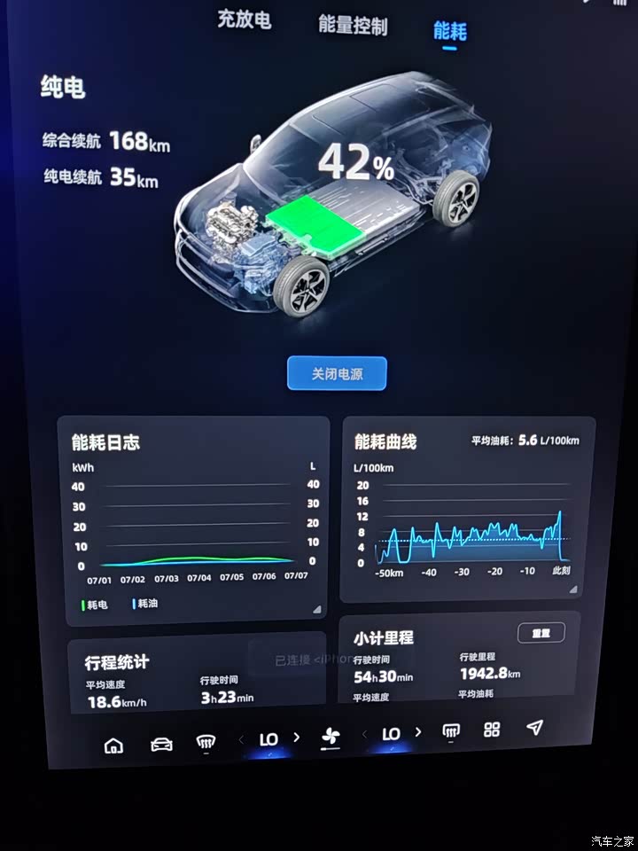 提车到现在加过2次油,第1次加满486元,第2次加了300元的,目前表示剩余燃油15%,充电大概花了150元左右,充电价格0.71-1.23元/度。满油满电应该在1000km左右续航,跑长途没有续航焦虑。高速上用智能模式+强制保电40%,感觉表显油耗能控制的更好一些。