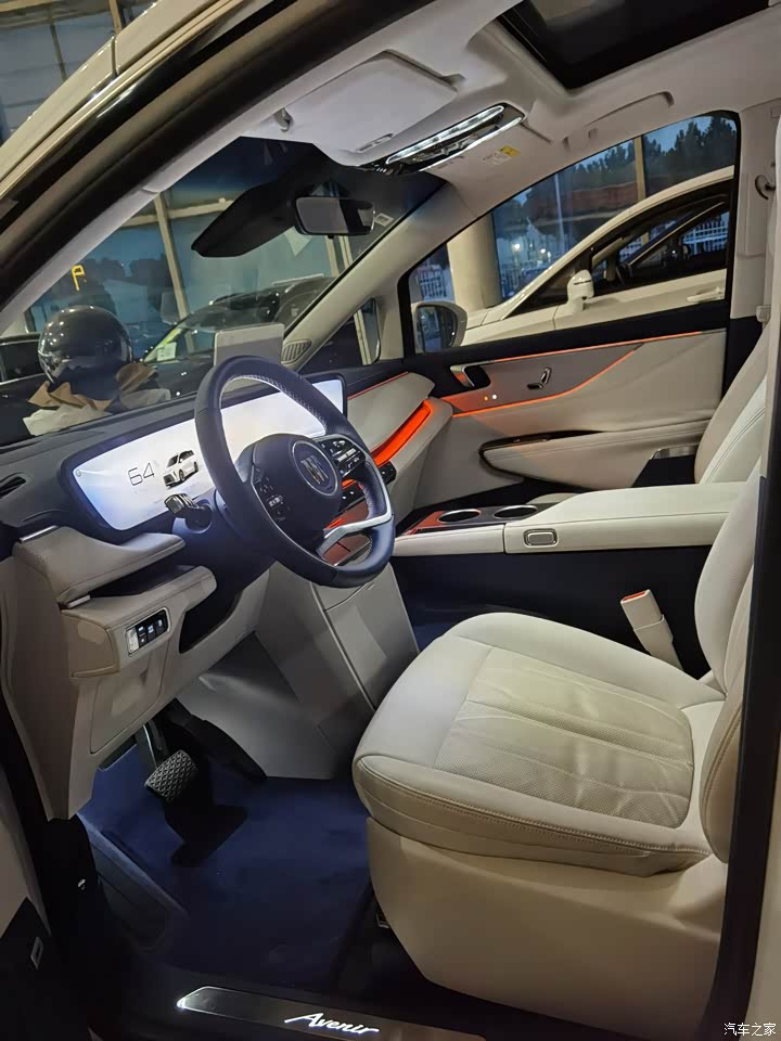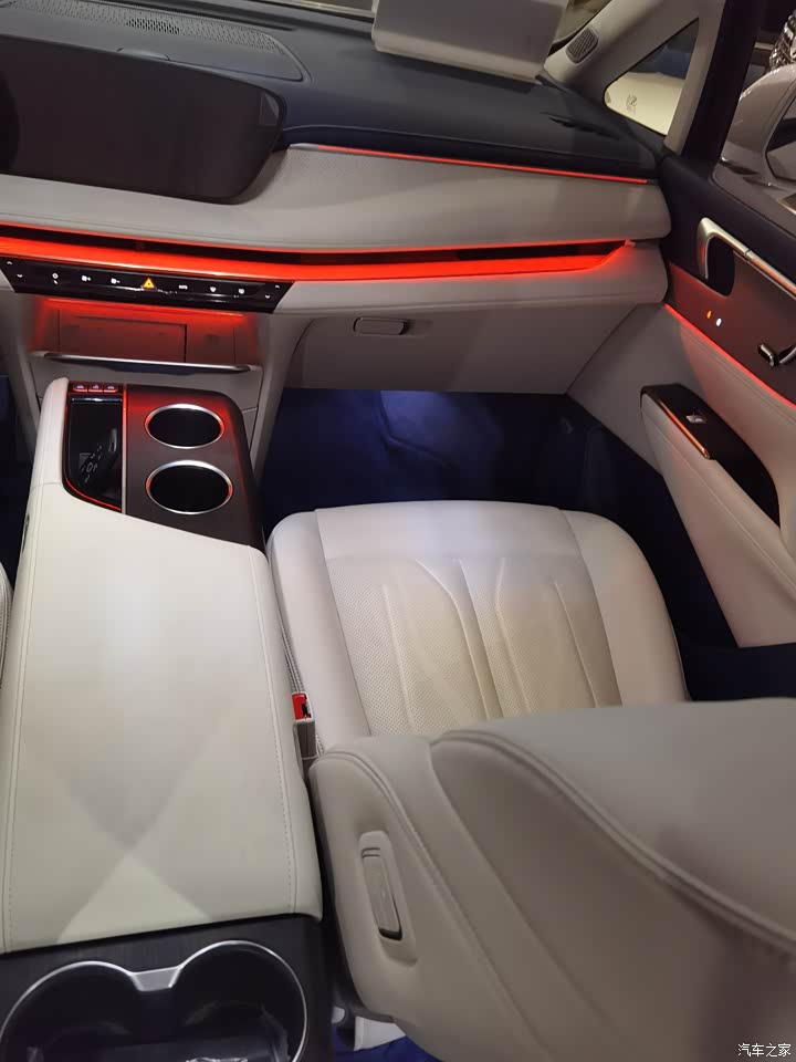 内饰真的是太惊艳了,有黑白和蓝白内饰,真的给人眼前一亮很特别的感觉,软材质包裹处真的是太多了,材质方面太用心了,摸上去软软的很舒服,空间超级大,怎么坐都舒服,太方便了,座椅简直就是一个按摩师一样不仅舒服还特别享受。