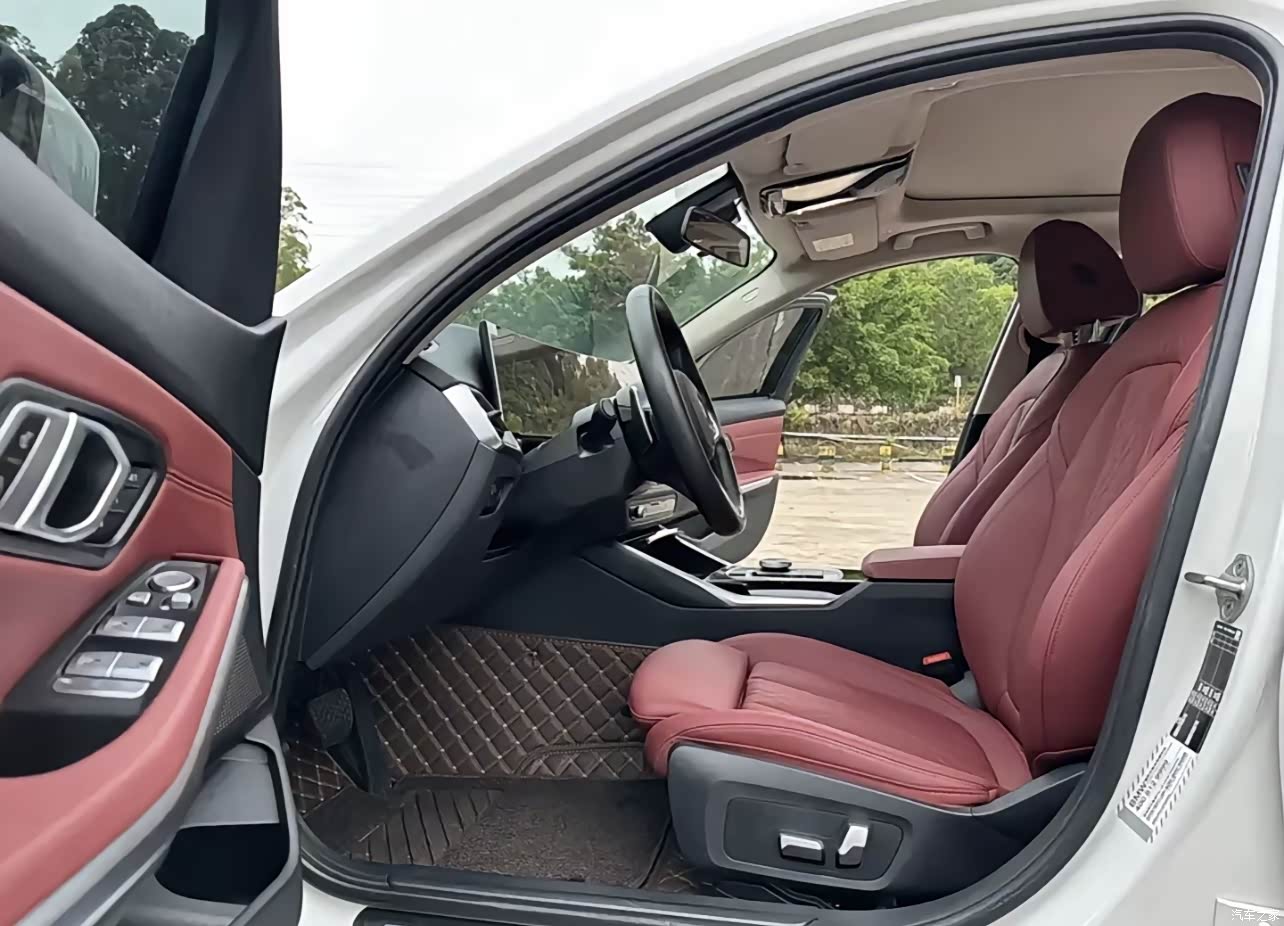 车里内饰用了个挺个性化的红色,看着挺有精神的,感觉像是坐在一个很运动化的车里。椅子是用好面料做的,摸起来软软的,夏天穿短裤坐久了也不觉得难受,因为透气性不错。做工看起来也挺讲究的,整个车里给人的感觉挺高档的。中间有个大屏幕,看起来挺现代的,而且设计得挺方便用的,边上的按钮也能轻易按到。仪表盘能换不同的显示样子,开车的时候感觉挺有意思的。不过空调的按钮被放到屏幕里去了,有时候要快点调温度啥的就不太方便。后面的座位也很舒服,门边上也包了皮子,怎么坐都舒服。后面还有头枕,坐长途车的时候脖子不会那么累。
