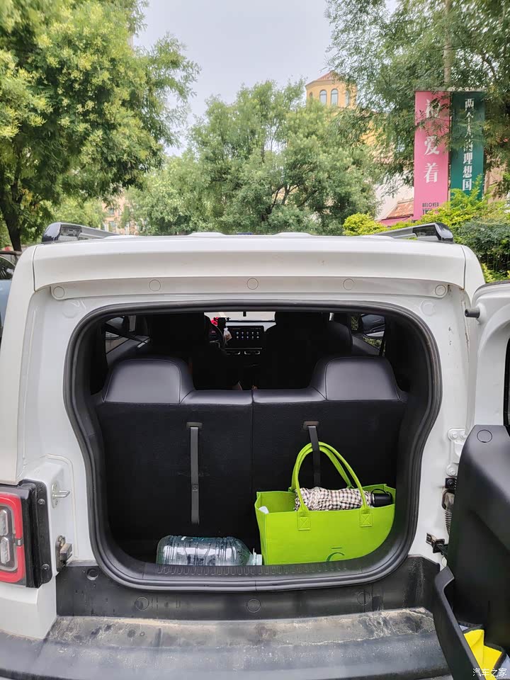 后备箱空间小,放不了大件物品,但右车门可以储物,后排座椅也可以放倒