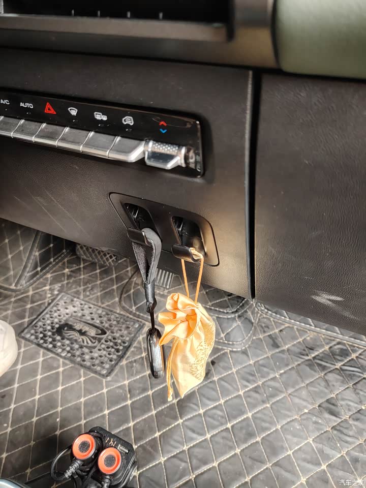 买车的时候销售介绍,全车有22处储存空间,其中屏幕下的这两个挂钩实用。