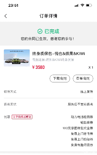 车价便宜了1500元,车价付款78300元,4S店送了保养和一大堆增品,又花3580元买了悦也的终身质保包,涵盖整车终身质保三电终身质保,今后所有的零部件问题,加三电系统宝骏都管,不用自己花钱!