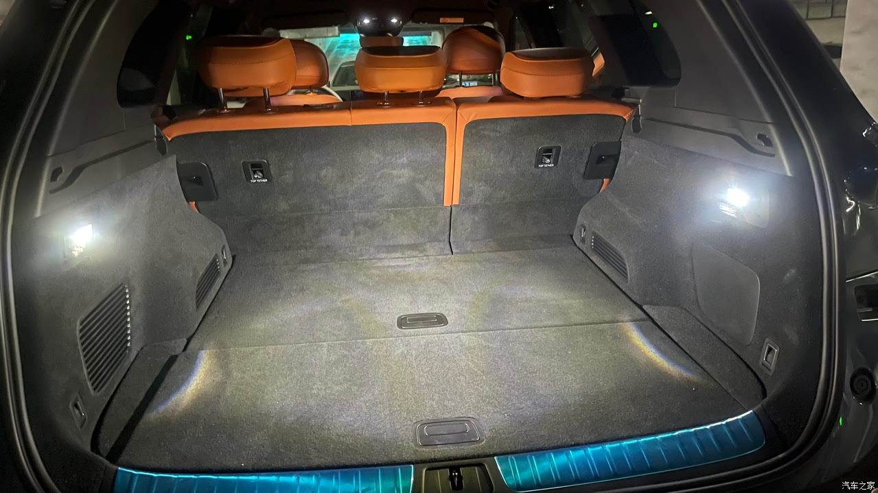 这个在第二排不放倒的情况下有686L,并且还有第二层的储物格子,可以放一些不常用的小件物品,第二排支持完全放到,这样的话可以达到1619L,两人出行拉再多东西都不怕,并且配合前排座椅放倒还可以形成3×1.5米的超大空间,完全可以直接当成大床房睡在车里,我对这种设计还是很满意的,并且很有趣的是,它的后备箱里也是有空调的,我觉得很有心的设计