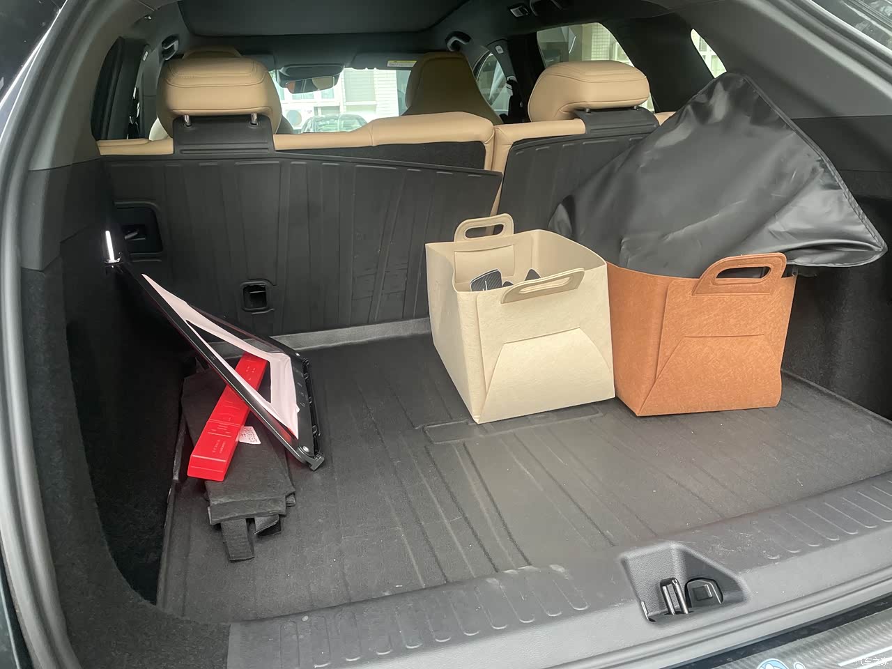 车子比较大,所以车内空间也比较充裕,前后排坐进去比较舒适。前后都有车内的储物空间,不会有别的车子那种脑残设计,车内放小物件的地方还是特别多的。后备箱下层利用率不是特别高,所以整体的后备箱空间稍显不足,好在上层空间比较充足,后排可以放倒,放倒后比较平,所以空间也足够使用。看网友有很多放倒后放到后面的床垫,想必空间是足够的。