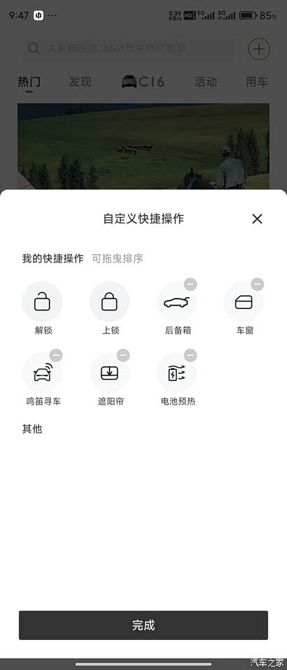 远程解锁上锁,开窗开关后备箱,开关空调等等,该有的都有,完全够用