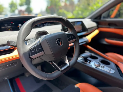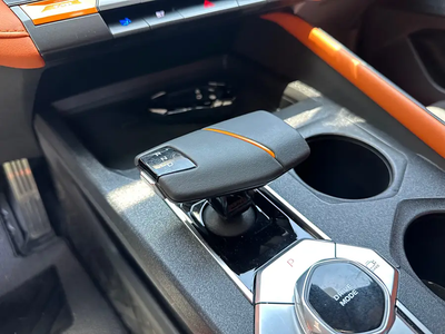 中控的部分可以说做的非常时尚了,我比较喜欢这种方向盘,看上去和整个车的内饰是比较搭配的,而且车里面的一些皮质运用的比较好,全部都是软材料,摸上去很舒服,也闻不到有什么味道。