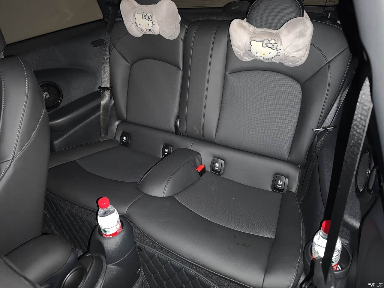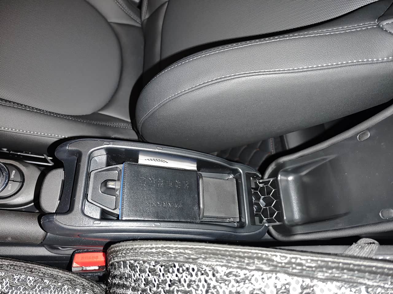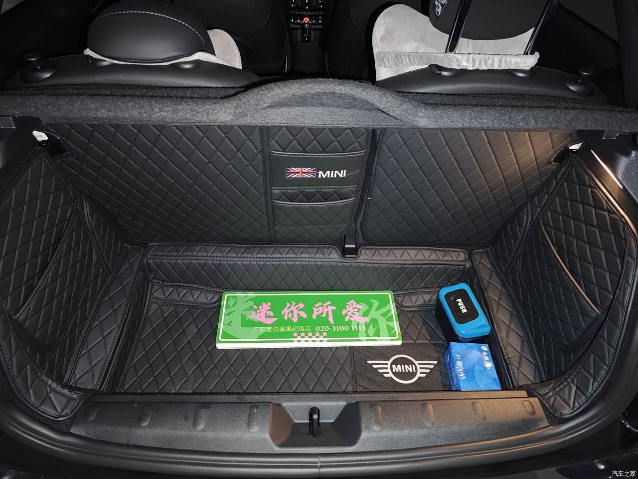4个座位,后排1米7几的成年人坐都ok,只是进出后排要手动将前排座椅移前,身手不敏捷的朋友表示费劲。 后备箱刚好可以放进28寸行李箱,放倒后排座椅后。 储物空间是真的少,前后排5个杯架,手机没啥地方放,建议加装门把手储物格。 通用手机支架不好安装,Mini专用的手机支架需要架在主驾的屏幕上。 扶手箱的无线充电鸡肋,大点的旗舰手机都放不下,只能放行驶证、驾驶证这些小物件。