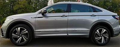 途观X,前脸部分很有层次感,反正我是越看越喜欢,我特别喜欢车身流畅的线条设计,非常的简约流畅,回头率还是很高,前脸整体设计大方得体。