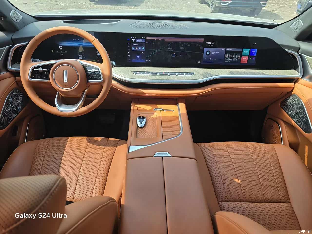 内饰用料高级,看着非常的豪华,材质质感细腻,多功能方向盘手感丰富,27英寸的中控大屏触感流畅。