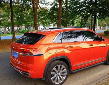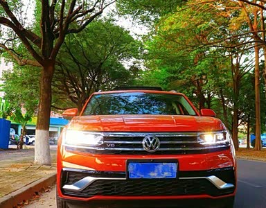 车轮非常的好看显得车身比较细长,晚上把大灯打开效果还是非常不错的,看起来挺有档次的,途昂X这辆车的外观就不用说的,给人一种很有个性的感觉。